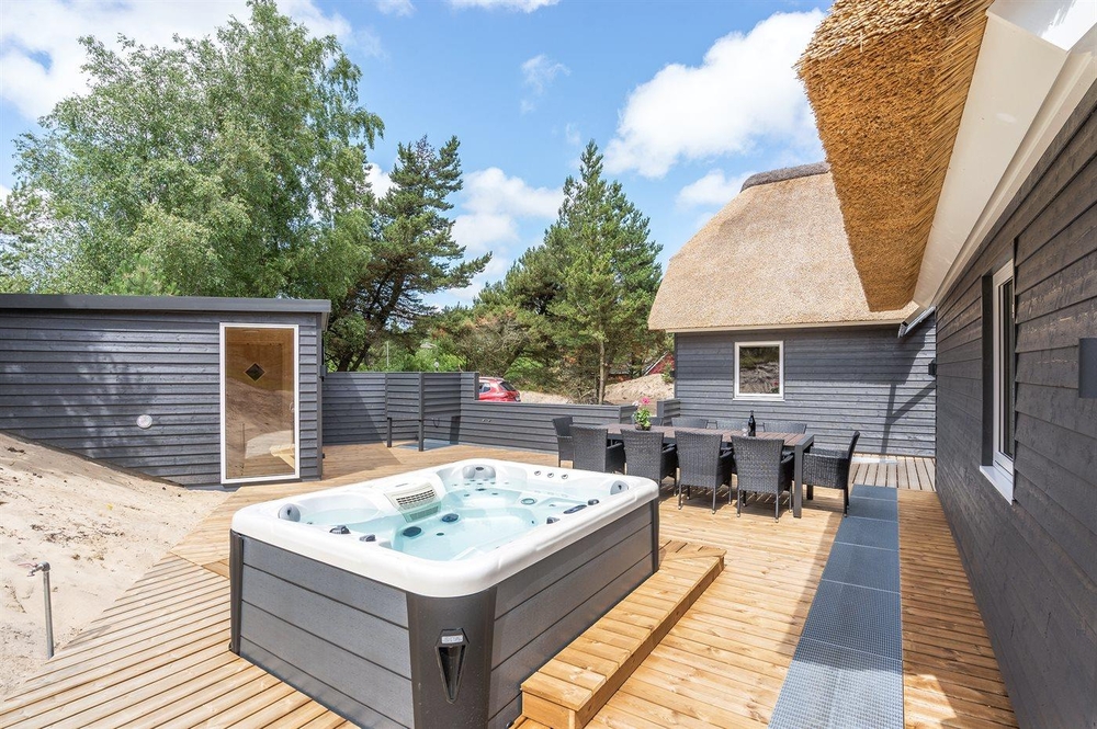 Seid ihr auf der Suche nach einem gemütlichen Reetdachhaus auf der Nordseeinsel Rømø mit vielen luxuriösen Extras wie Whirlpool, Sauna und hochwertiger Innenausstattung? Dann seid ihr hier im A Hveyselsvej 28 genau richtig. Dieses stilvolle Ferienhaus hat jede Menge Platz für bis zu 10 Personen und ist durch seine Aufteilung in ein Haupt- und ein Nebenhaus ideal auch für 2 Familien geeignet. Bis zu 2 Hunde sind hier ebenfalls Willkommen und dürfen sich auf lange Strandspaziergange mit euch freuen.