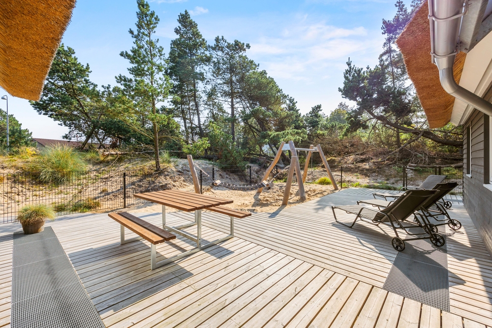 Auf dem herrlichen und weitläufigen Naturgrundstück habt ihr jede Menge Platz. Die verschiedenen Terrassenebereiche sind mit Sonnenliegen und hochwertigen Terrassenmöbeln bestückt und laden zum Entspannen an der frischen Luft ein. Genießt einen frisch gebrühten Kaffee, währenddessen eure Kinder sich austoben und das Klettergerüst mit Schaukel und Rutsche ausprobieren.