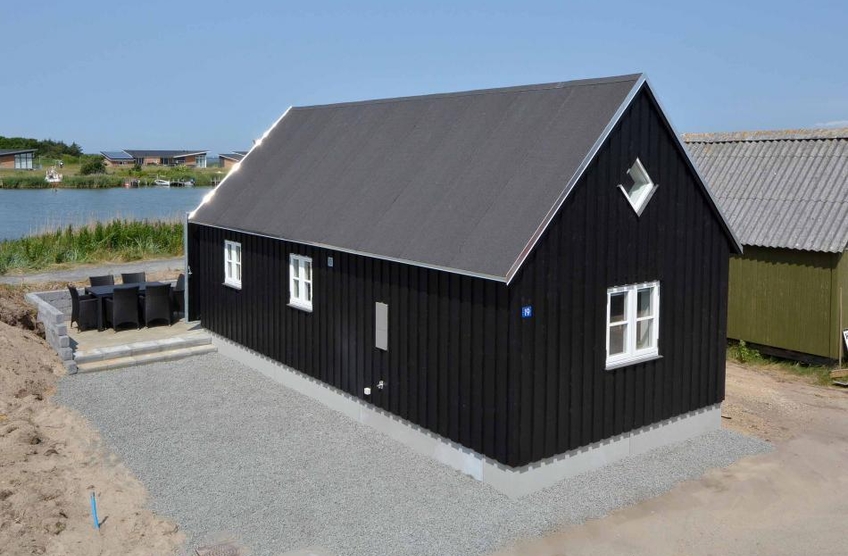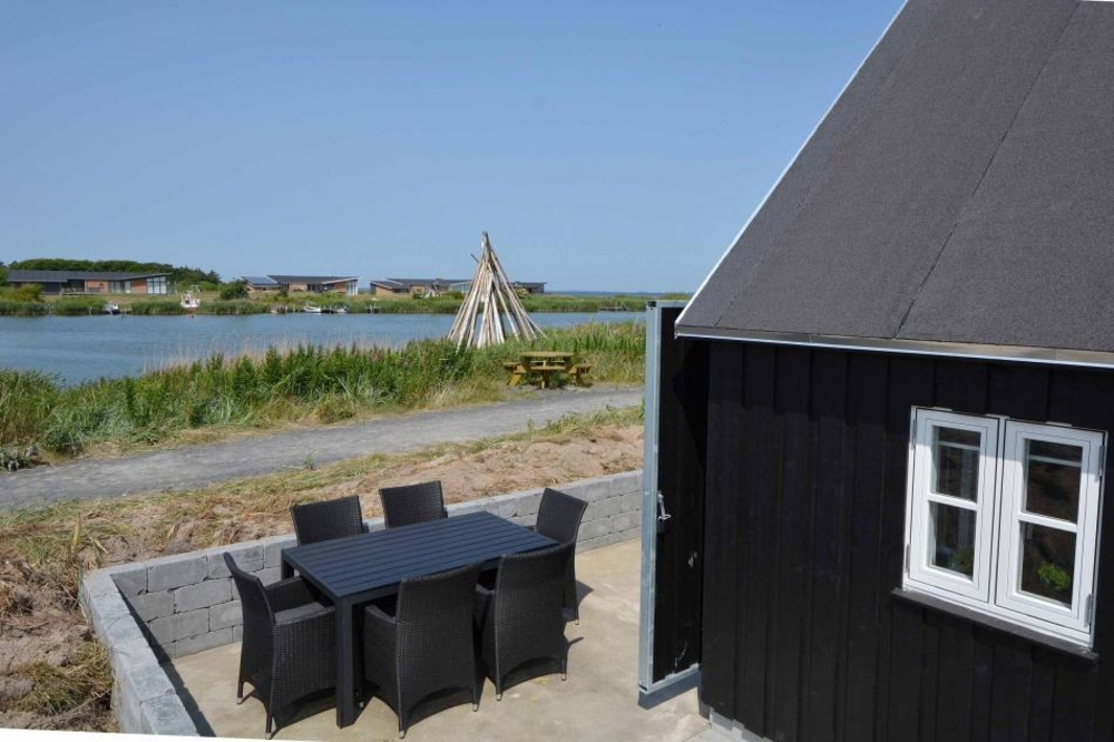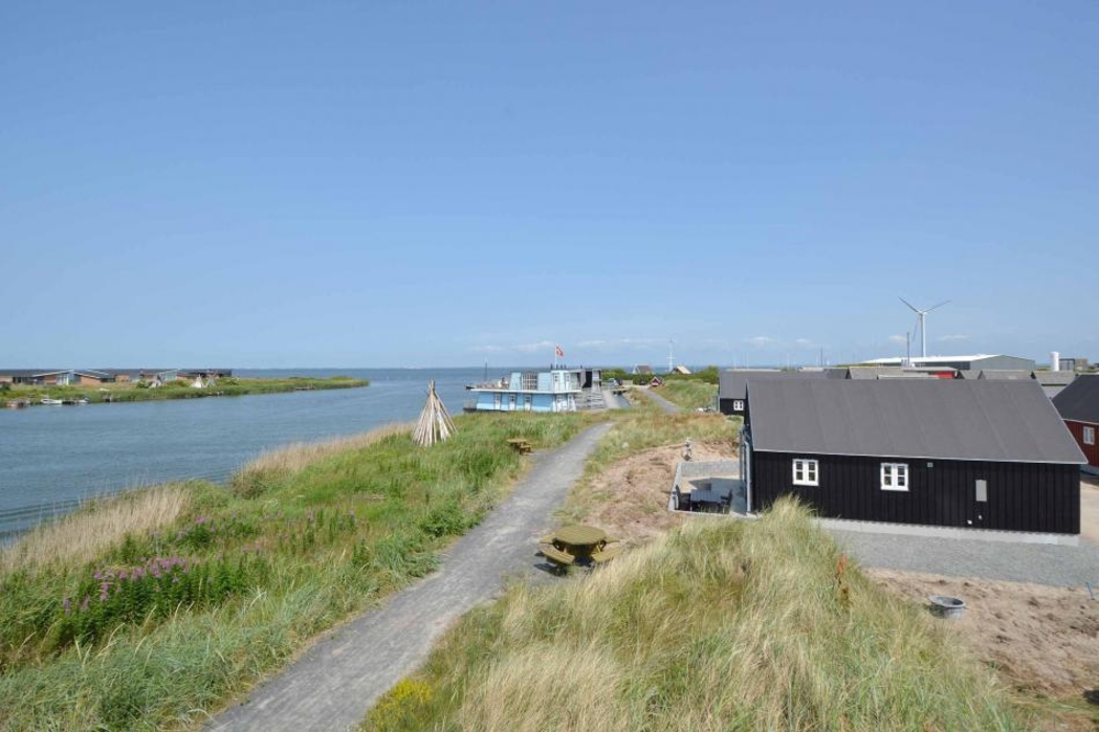 Wohnt Ihr in einer modernen Hütte in Hvide Sande mit Aussicht zum kleinen Hafen und Ringkøbing Fjord. Die Hütte liegt in einem alten Hafenbereich direkt am Fjord, wo die alten, ursprünglichen Geräteschuppen durch kleine Hütten, gebaut mit Respekt vor dem Gebiet, errichtet wurden.