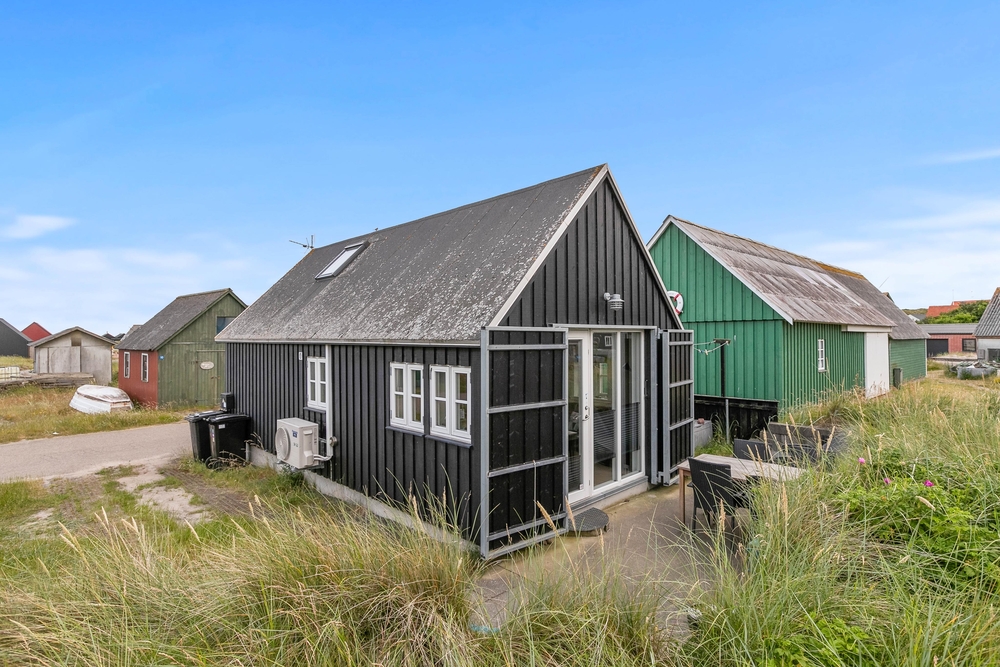 Eine schöne kleine Hütte, gebaut im alten Hafengebiet in Hvide Sande. Hier haben die Hütten viele Jahre als Lagerort für die Gerätschaften der Fischer gedient. Heutzutage wurden viele der alten Hütten entfernt und werden nun durch diese kleinen, gemütlichen Hütten erstattet, welche mit Respekt für die Umgebung erbaut werden, damit die autenthische Hafenstimmung bewahrt wird.