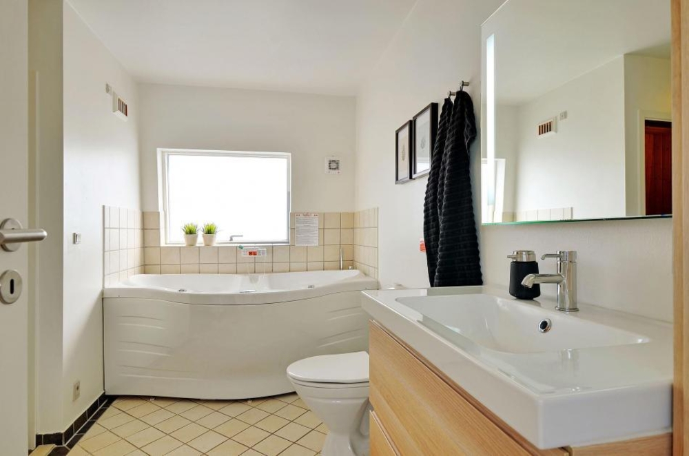 Im Erdgeschoss hast du die tolle offene Küche und der Essbereich ? hier kannst du kochen und dich mit der Familie unterhalten. Dazu gibt es hier zwei Schlafräume, eine praktische Gästetoilette und ein Badezimmer mit Sauna und Whirlpool, damit du dich richtig entspannen kannst.