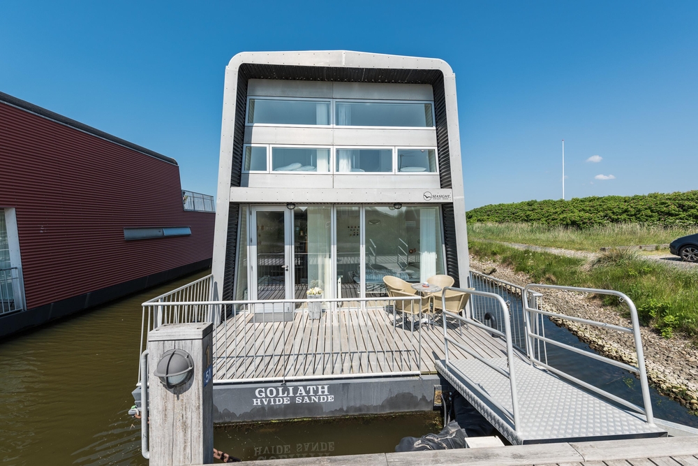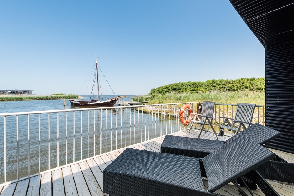 Das Hausboot liegt in einem kleinen gemütlichen Hafen, wo du die authentische Fischeratmosphäre und die schöne Natur am Fjord erleben kannst. Dazu wohnst du noch nah an den Geschäften, Restaurants und dem tollen Nordseestrand in Hvide Sande.