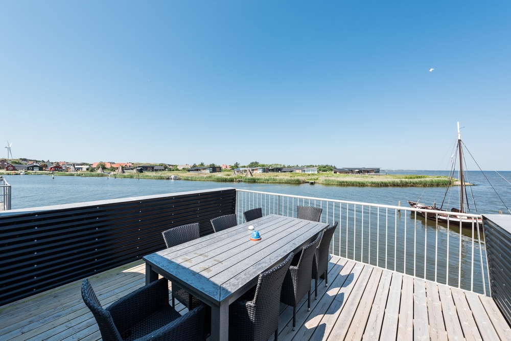Dazu gibt es auch zwei Terrassen, damit du auch draußen sitzen und die frische Luft und Grillabende genießen kannst. Von hier hast du einen guten Überblick über die Einfahrt und das Leben des Fjordhafens, wo das Hausboot angelegt ist.