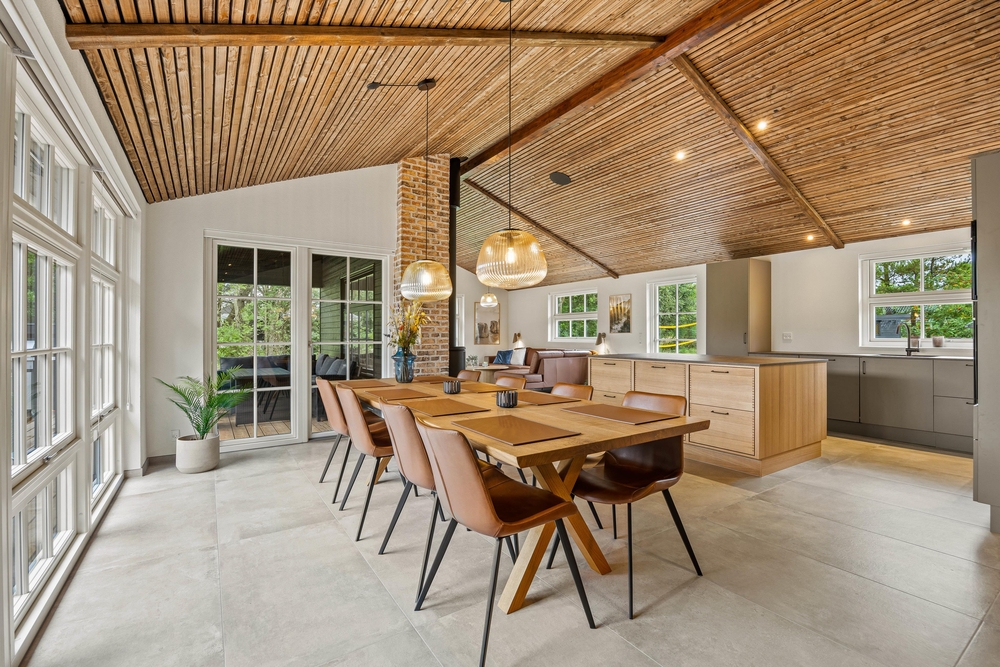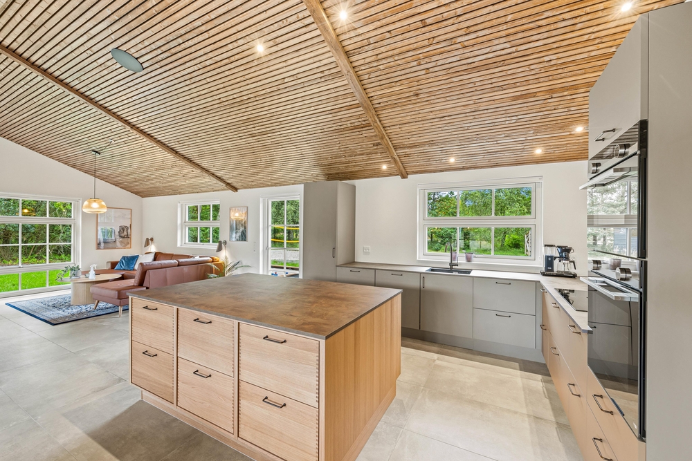 Hochwertige Einrichtung mit Designmöbeln, und einer luxuriösen Ausstattung erwarten euch wenn ihr die 165 m² im Almosetoften 7 betretet. Vielleicht ein Ferienhaus aus dem man gar nicht mehr nach Hause möchte. Die hochwertige Küche ist technisch auf dem neusten Stand, und fügt sich optimal in das schöne Ambiente des Ferienhauses ein. Hier möchte bestimmt jeder mal den Kochlöffel schwingen.