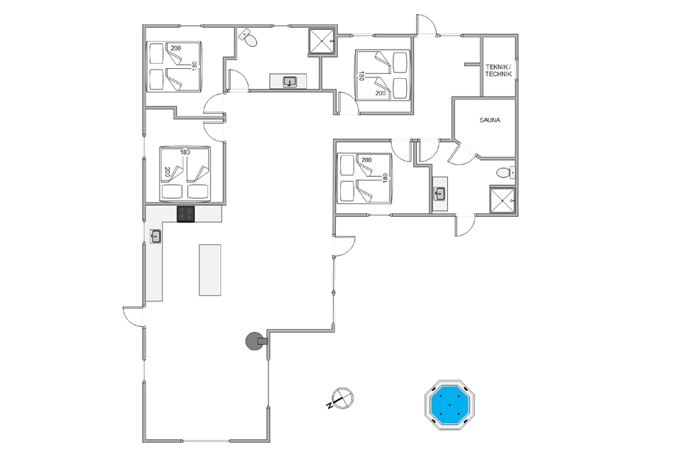 Die hochwertige Einrichtung findet ihr auch in den 4 Schlafzimmern wieder. In den bequemen Doppelbetten werden die Akkus wieder aufgeladen. Genießt die Ruhe der Natur von der ihr umgeben seid. Die beiden Badezimmer könnten auch kleine Wellness Tempel sein. Hier hält man sich gerne auf. In der Sauna könnt ihr euer Immunsystem stärken oder euch einfach mal was Gutes tun.