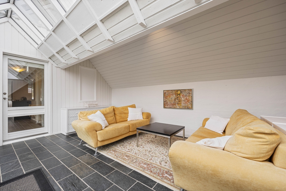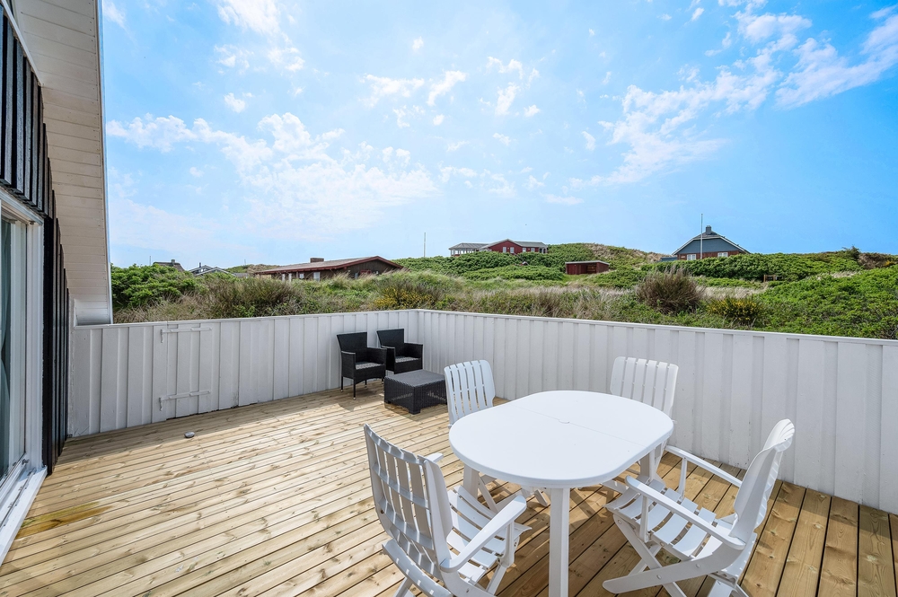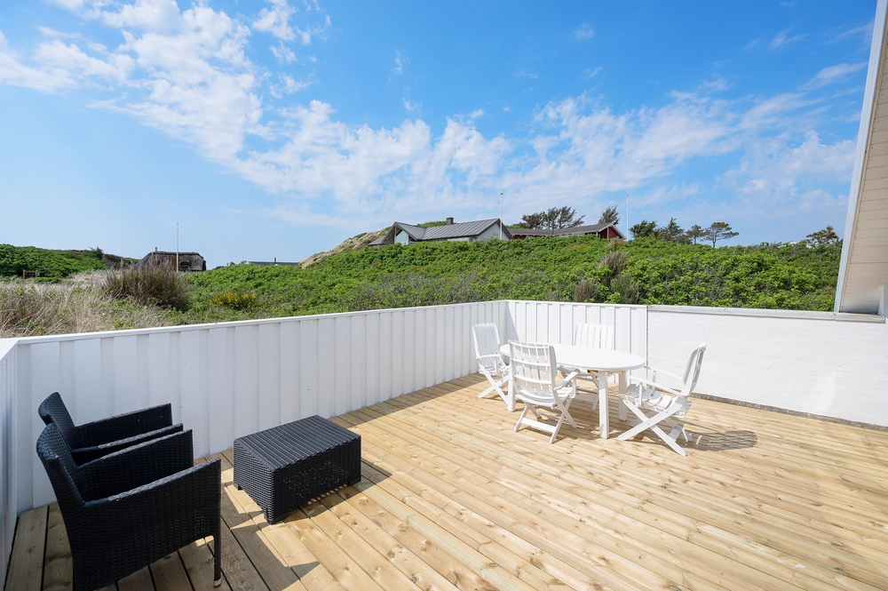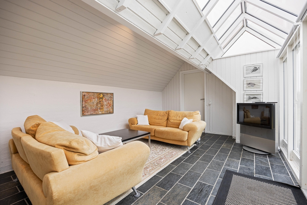 Vom Wohnzimmer aus gibt es einen direkten Zugang zur großen, geschlossenen Südterrasse. Hier könnt ihr euren Morgenkaffee genießen, und später am Tag könnt ihr auf der nach Westen ausgerichteten, geschlossenen Terrasse mit einem guten Buch im Schatten sitzen. Ansonsten könnt ihr den Grill anwerfen und die Nachmittags- oder Abendsonne genießen.