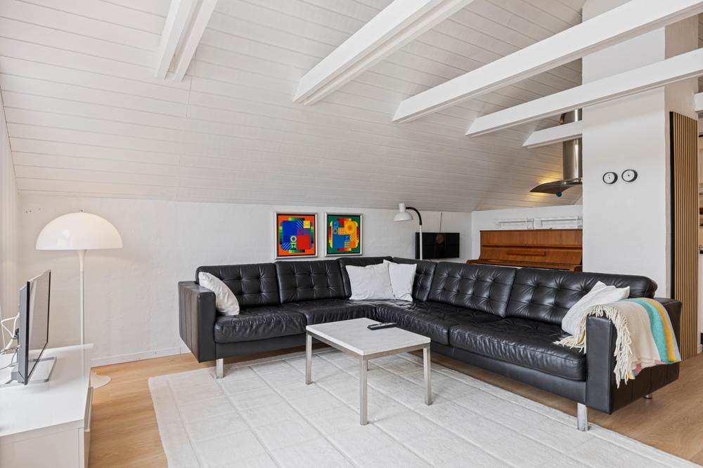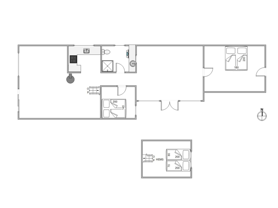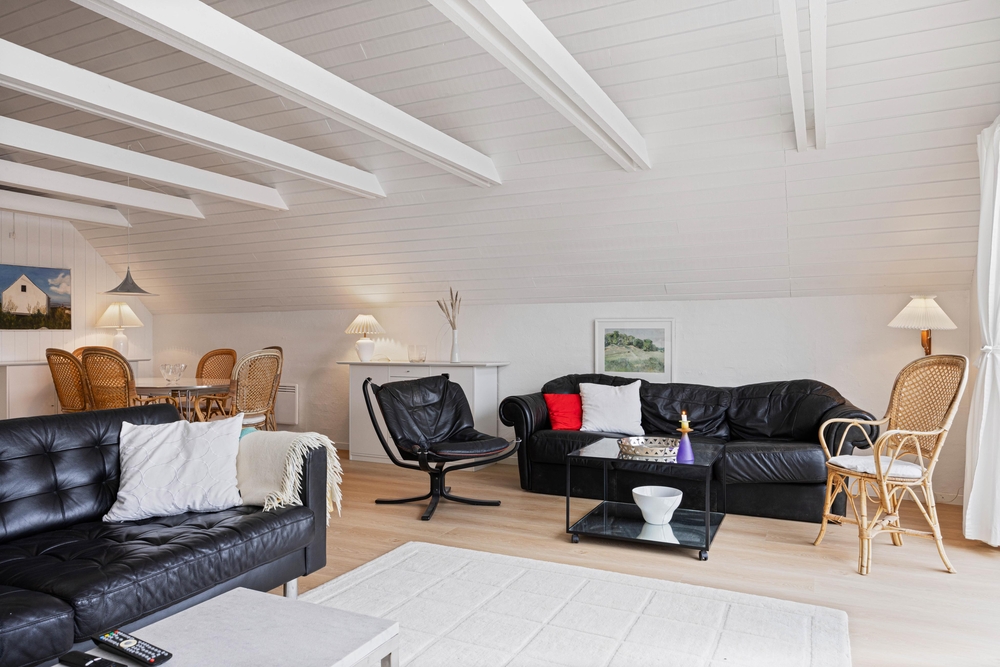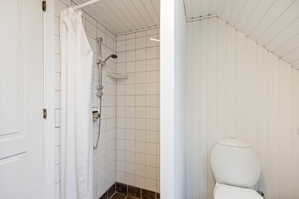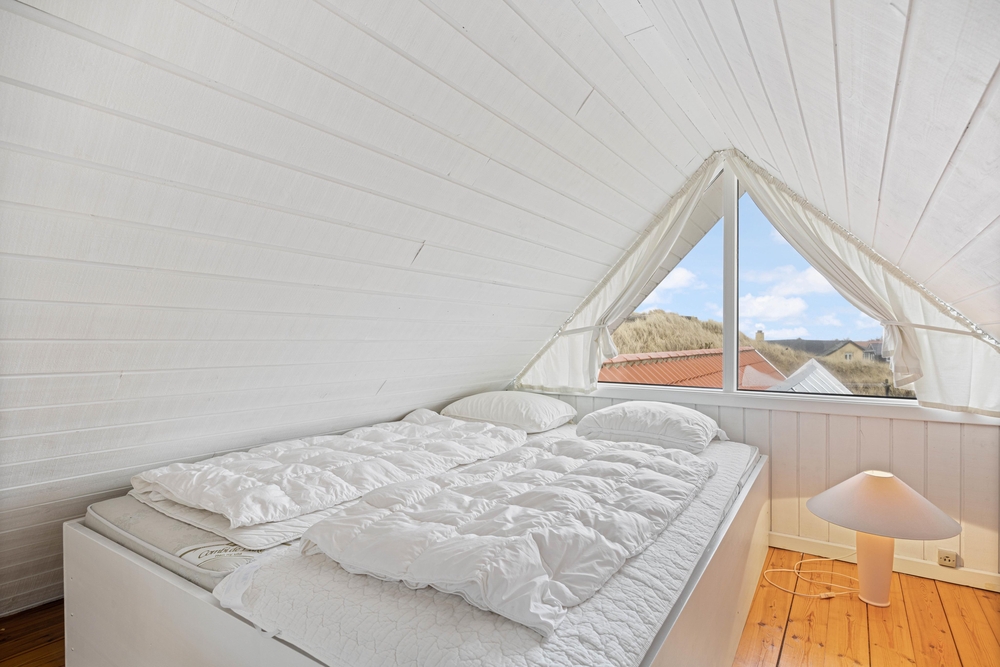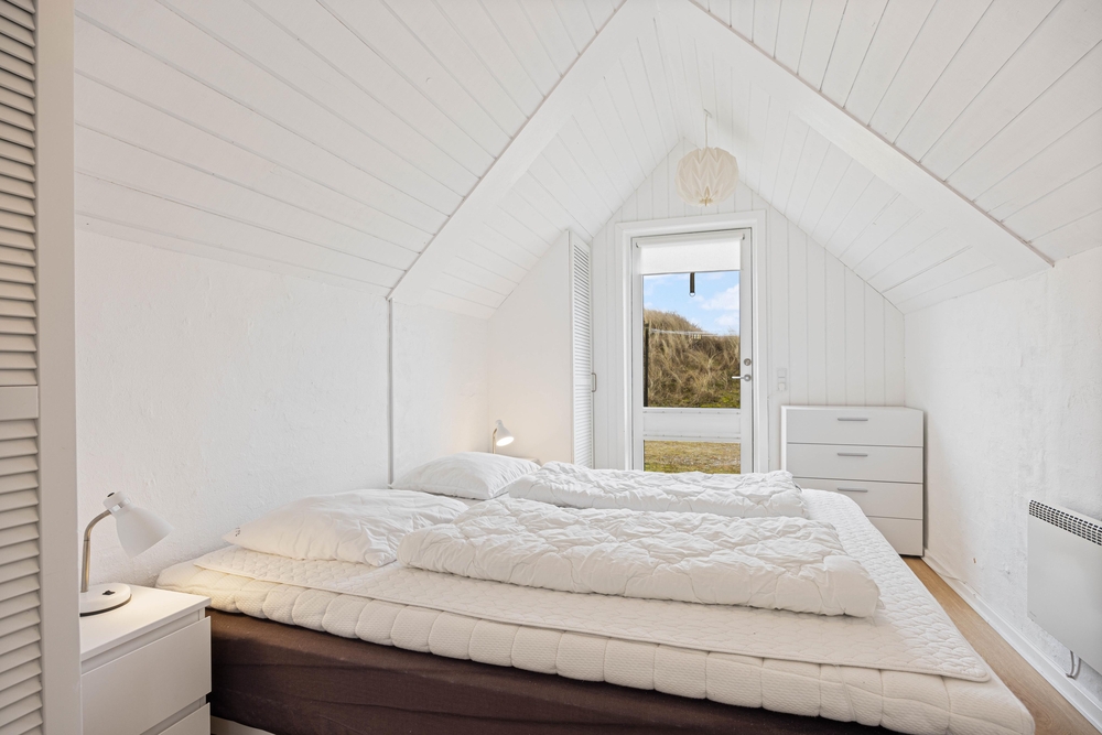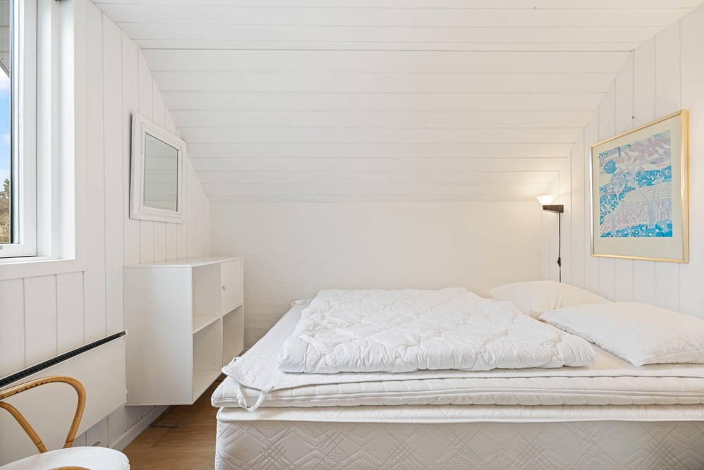 Das Ferienhaus ist mit zwei guten Schlafzimmern und einem Dachboden mit einem Doppelbett ausgestattet. In dem Ferienhaus findet ihr auch ein helles und schönes Badezimmer mit beheiztem Fliesenboden.