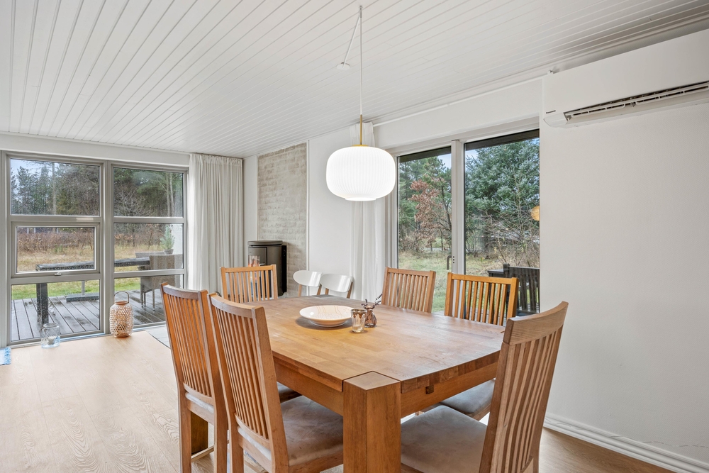Obwohl das Ferienhaus in einer ruhigen Umgebung liegt, seid ihr nur einen herrlichen Spaziergang oder eine kurze Autofahrt von den atemberaubenden Stränden von Houstrup oder Henne Strand entfernt. Nutzt die Gelegenheit, die malerische Landschaft zu erkunden, entlang der Küste zu spazieren oder einfach nur die frische Luft und die Ruhe der Umgebung zu genießen. Für Naturliebhaber bietet die nahegelegene Blåbjerg Plantage zahlreiche Wander- und Radwege durch malerische, verwunschene Wälder und Dünenlandschaften, die zu unvergesslichen Momenten und wunderschönen Fotomotiven einladen.