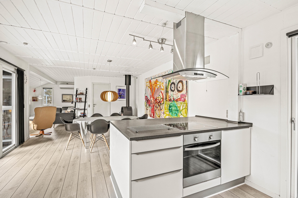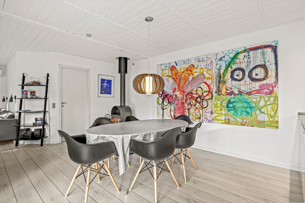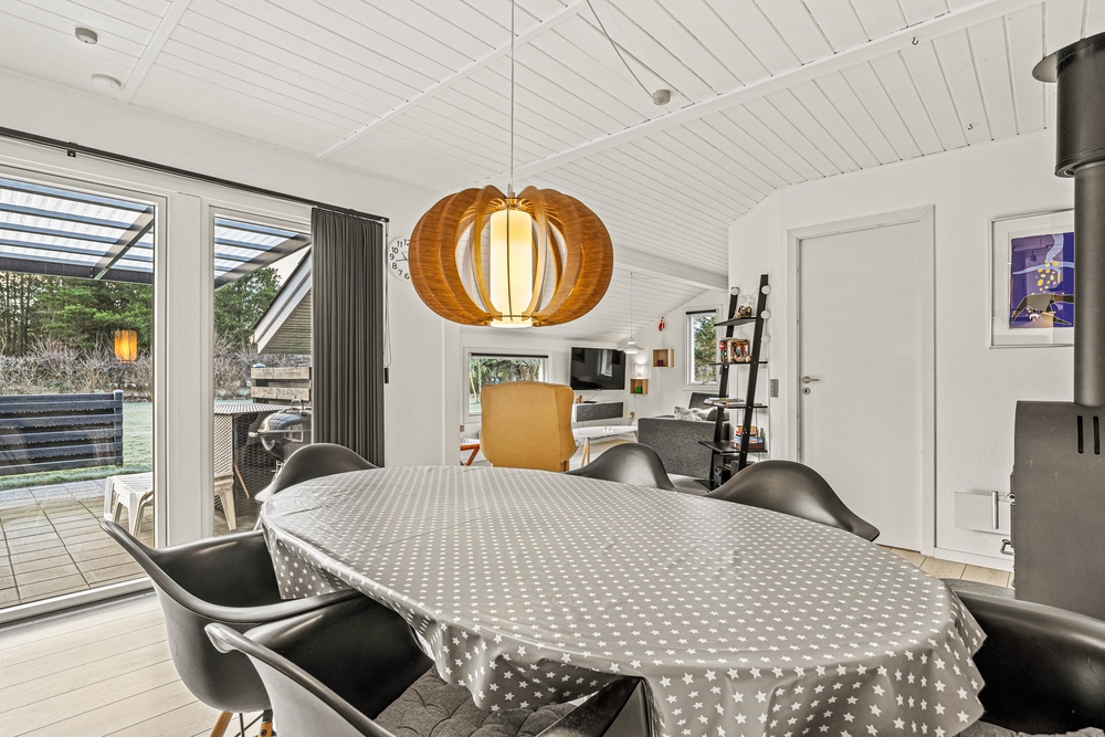 Mitten im Waldgebiet Houstrups liegt dieses tolle Ferienhaus im Anders Lyhnesvej 16. Es besticht durch eine helle und stilvolle Einrichtung und ist der perfekte Ort für einen erholsamen Urlaub. Das Haus ist modern und komfortabel ausgestattet, bietet Platz für bis zu 6 Personen und sorgt mit einem Kamin besonders in der kälteren Jahreszeit für eine angenehme Temperatur und eine behagliche Atmosphäre.