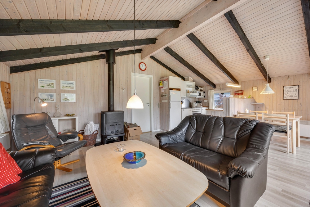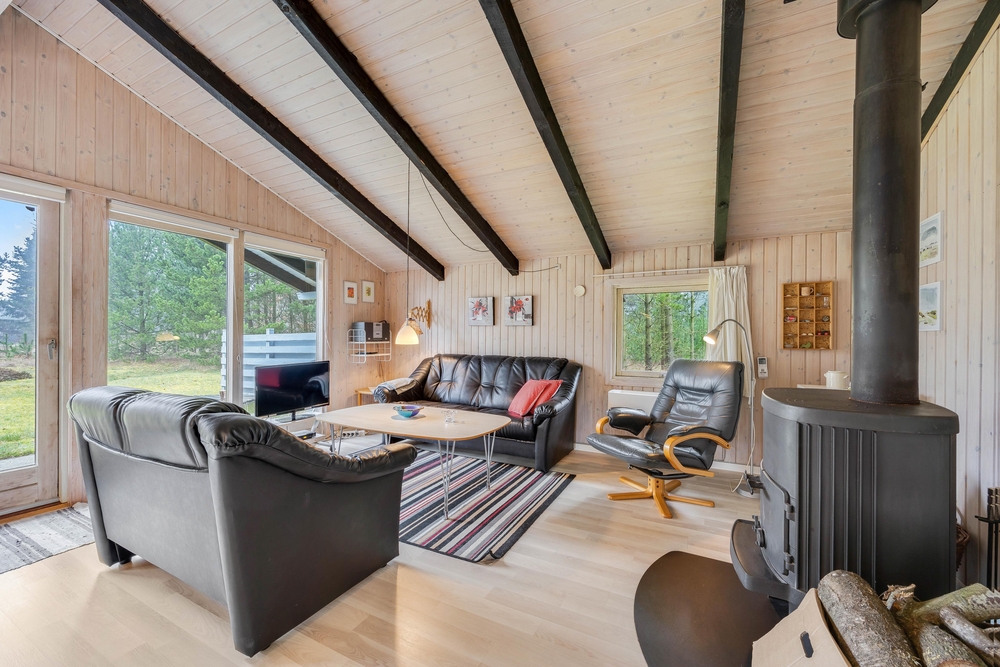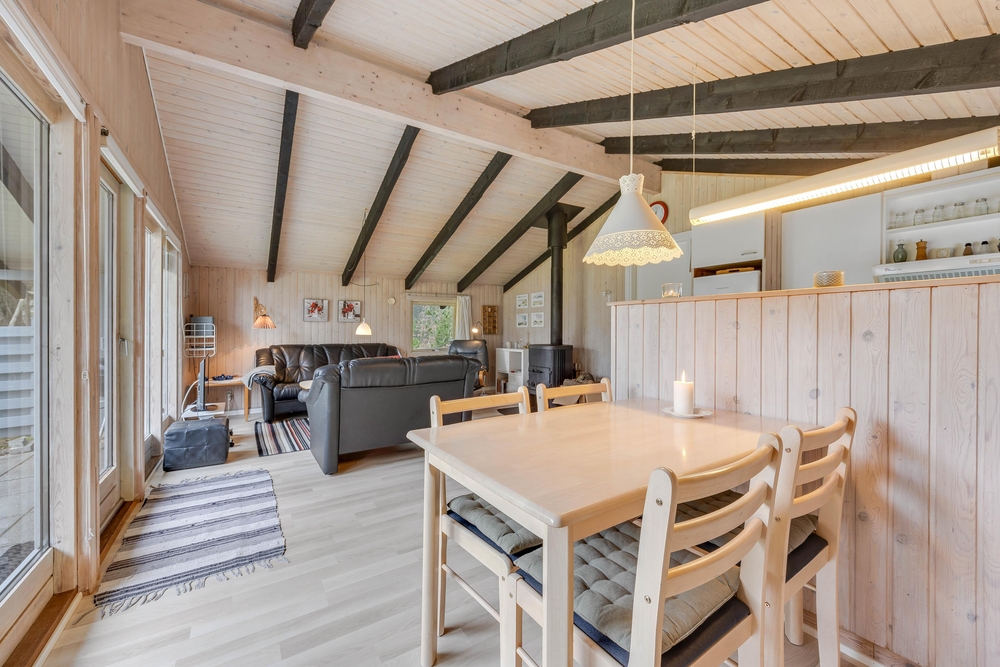 Das Ferienhaus ist hell eingerichtet und die schwarzen Deckenbalken in jedem Zimmer, verleihen dem Haus die gewisse gemütliche Atmosphäre, wie man es von einem typischen dänischen Ferienhaus kennt.