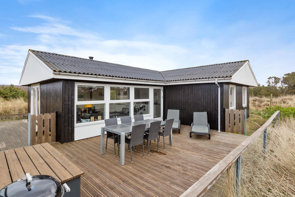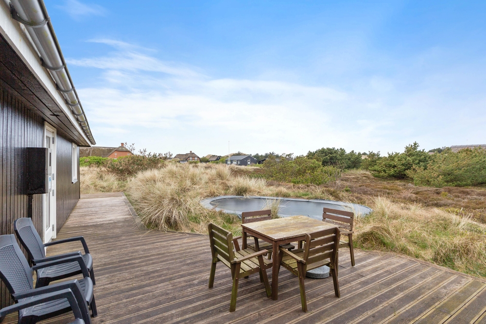 Die Sitzbereiche stehen euch zur Verfügung, sodass ihr rund um das Haus zu jeder Zeit in der Sonne sitzen könnt. Von der Terrasse aus könnt ihr direkt auf die wunderschöne westjütländische Natur mit Heidekraut und den Dünen blicken. Ein perfekter Ort, um einfach mal zu entspannen.
