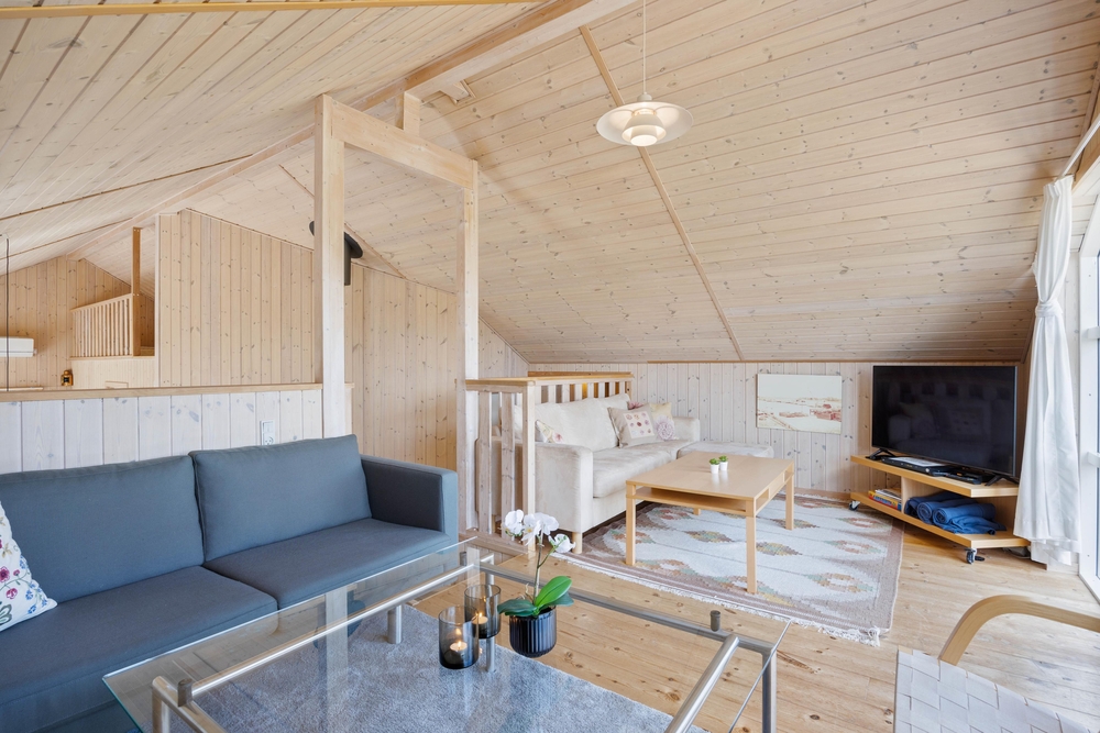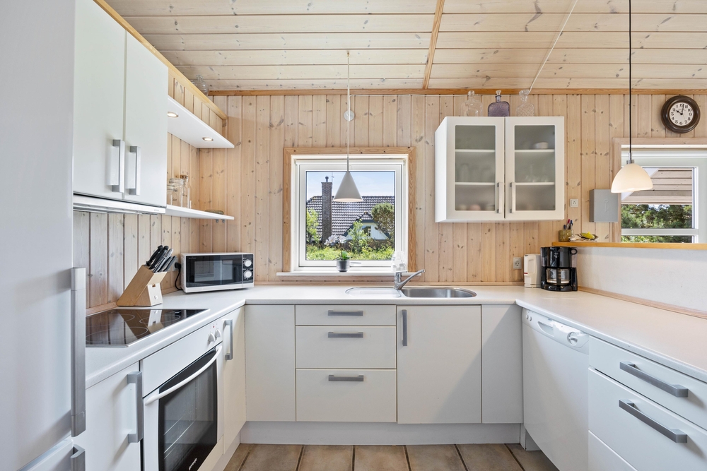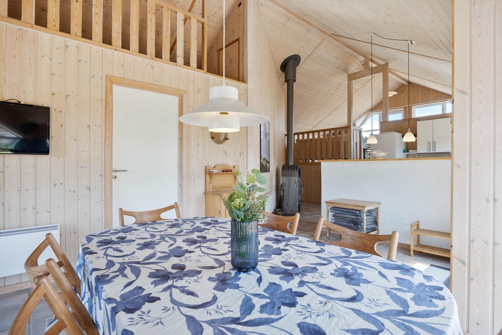 Das Herzstück des Ferienhauses bildet der große Wohnbereich, welcher mit dem Essbereich und der Küche verbunden ist. Hier könnt ihr gemeinsam kochen, Gesellschaftsspiele spielen oder die Aktivitäten der nächsten Tage planen. Des Weiteren bietet euch der große Wohn- und Essbereich die Möglichkeit, dass jeder seinen eigenen Aktivitäten nachgehen kann, ohne dass ihr den Kontakt zueinander verliert. Die Küche ist mit einem Geschirrspüler ausgestattet, sodass ihr bei euren Spieleabenden nicht um den nächsten Abwasch spielen müsst.