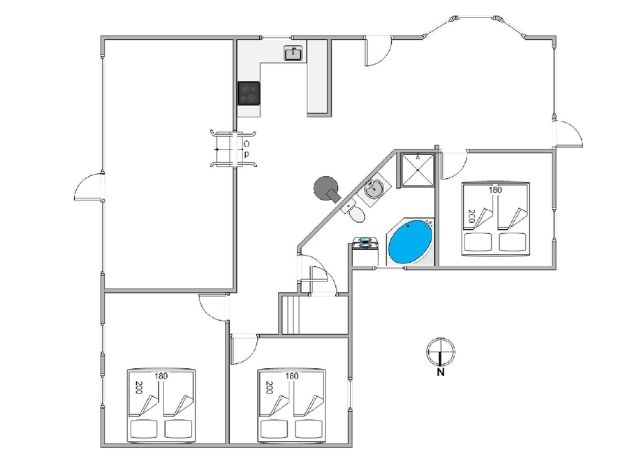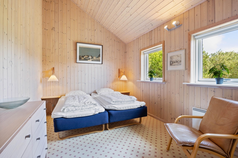 Vom Essbereich und der Küche aus gelangt ihr in die 3 Schlafzimmer, welche jeweils mit einem Doppelbett ausgestattet sind. Im Badezimmer mit Fußbodenheizung bekommt ihr auch im Herbst / Winter keine kalten Füße. Nach einem langen und erlebnisreichen Tag in der Natur Westjütlands könnt ihr euch entweder in der hauseigenen Sauna oder im Whirlpool entspannen und den Tag Revue passieren lassen.
