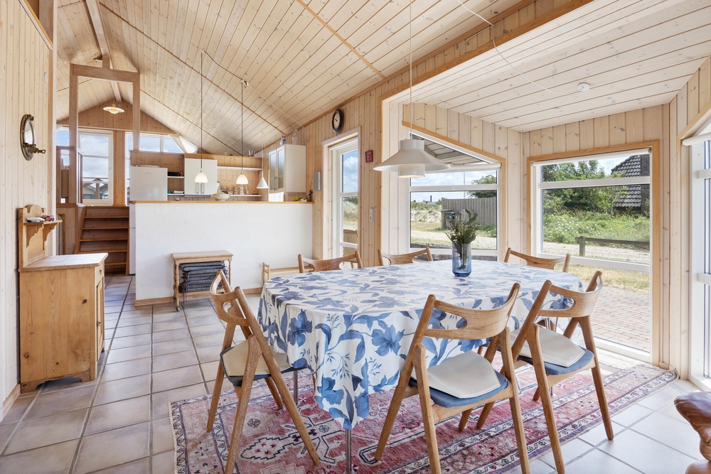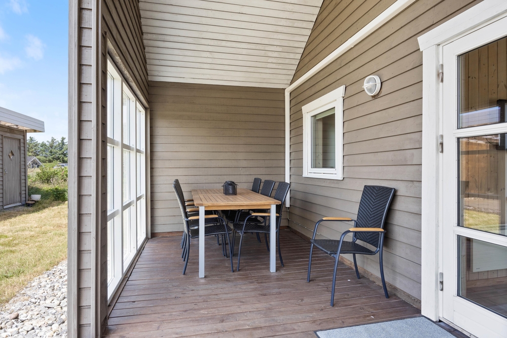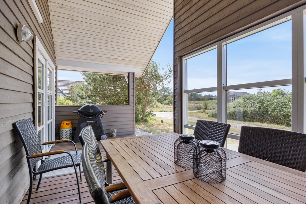 Vom Essbereich des Ferienhauses im Anker Eskildsens Vej 112 aus gelangt ihr auf die überdachte Terrasse, von wo ihr die Natur in Nr. Lyngvig genießen könnt. Am Ferienhaus findet ihr die passenden Terrassenmöbel und Liegestühle, auf denen ihr euch sonnen oder ein gutes Buch lesen könnt. Wenn ihr nach einem erlebnisreichen Tag mal keine Lust habt zu kochen, könnt ihr abends einfach etwas auf den Grill legen und den Abend gemütlichen ausklingen lassen.