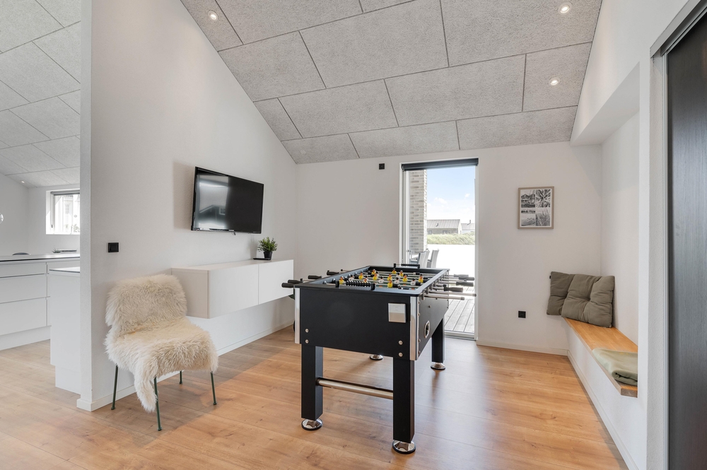 Wenn ihr das Beste aus eurer kostbaren Urlaubszeit machen wollt, ist dieses schöne Ferienhaus in Nr. Lyngvig die perfekte Wahl für euch! Die stilvolle Einrichtung mit hohen Decken und komfortablen Einrichtungen wie Sauna und Whirlpool sorgen für viel Entspannung im Urlaub. Der Aktivitätsraum mit Tischkicker wird zudem ein Hit für die Kinder sein. Auf der Terrasse könnt ihr die frische Luft und den Blick auf den Ringkøbing Fjord genießen.