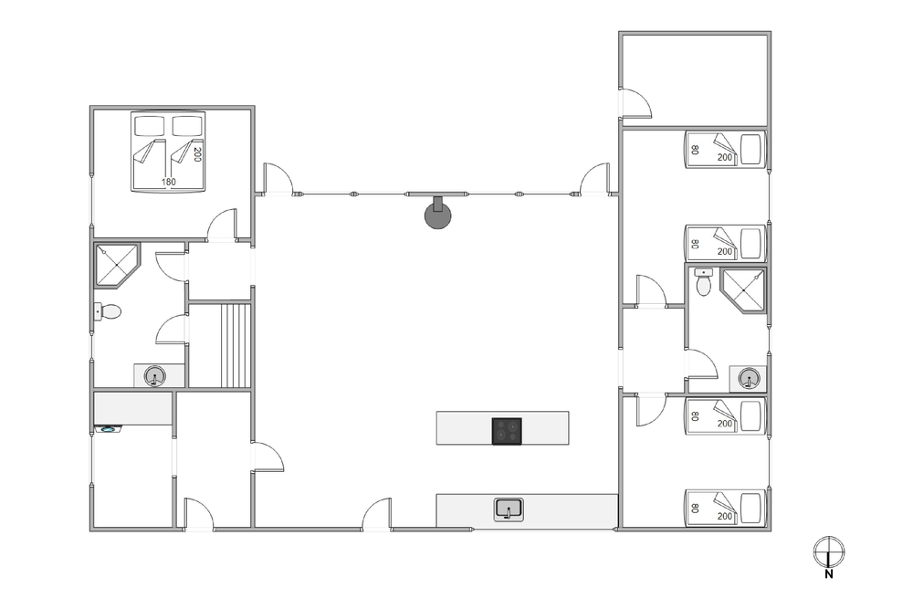 Das Ferienhaus ist schön und gemütlich eingerichtet, damit du alles für einen entspannten und erholsamen Urlaub hast. Es ist geräumig und das Herz des Ferienhauses ist ein schöner großer Raum mit Wohnzimmer und offener Küche, in dem die ganze Familie sich entspannen und vielleicht etwas Schönes kochen kann. Das Haus verfügt über zwei Badezimmer, was bei einer Belegung von 6 Personen sicherlich sehr angenehm ist.