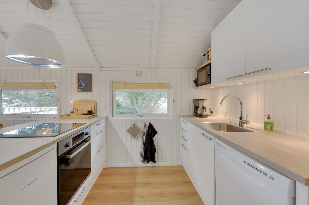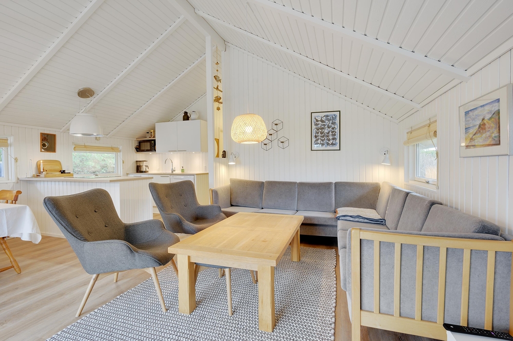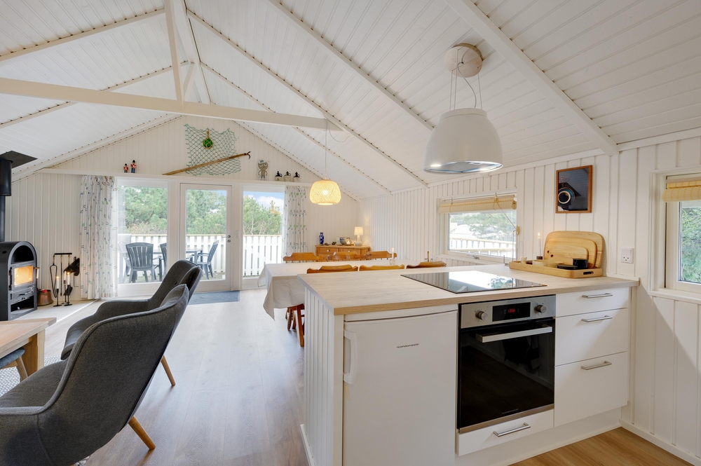 Das Herzstück des Ferienhauses ist der einladende Wohnbereich, der Küche, Essbereich und Wohnzimmer miteinander vereint. Hier werdet ihr mit Sicherheit viele gemeinsame Stunden verbringen. Sei es beim gemeinsamen Kochen, langen Spieleabenden oder einem entspannten Abend auf dem Sofa.