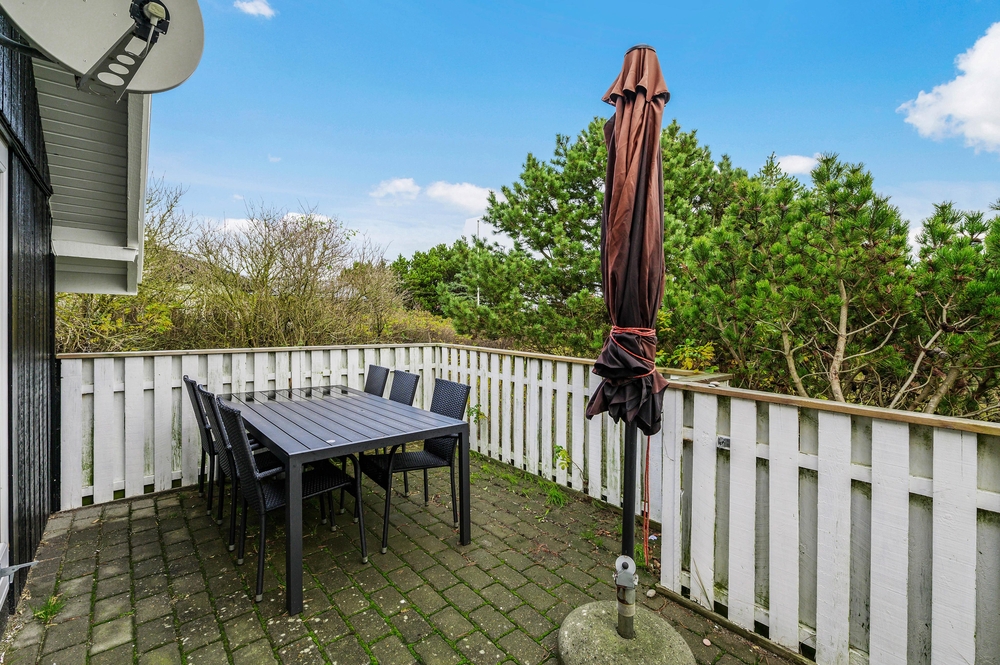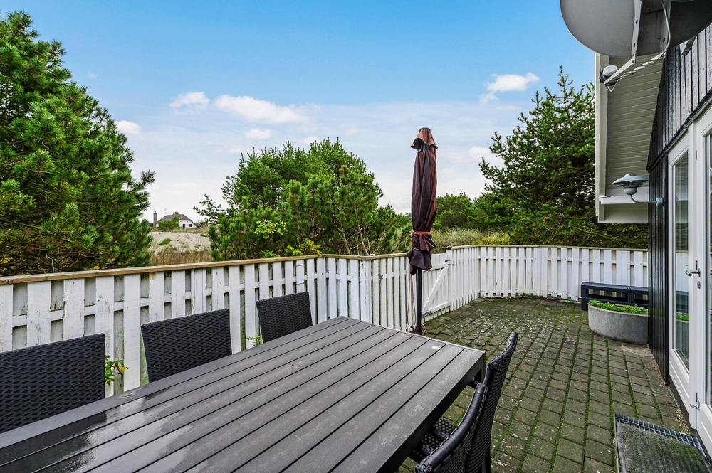 Vom Wohnbereich aus habt ihr Zugang zu einer der beiden Terrassen des Ferienhauses. An sonnigen Tagen lädt die Terrasse gerade dazu ein, es sich dort mit einem guten Buch bequem zu machen.