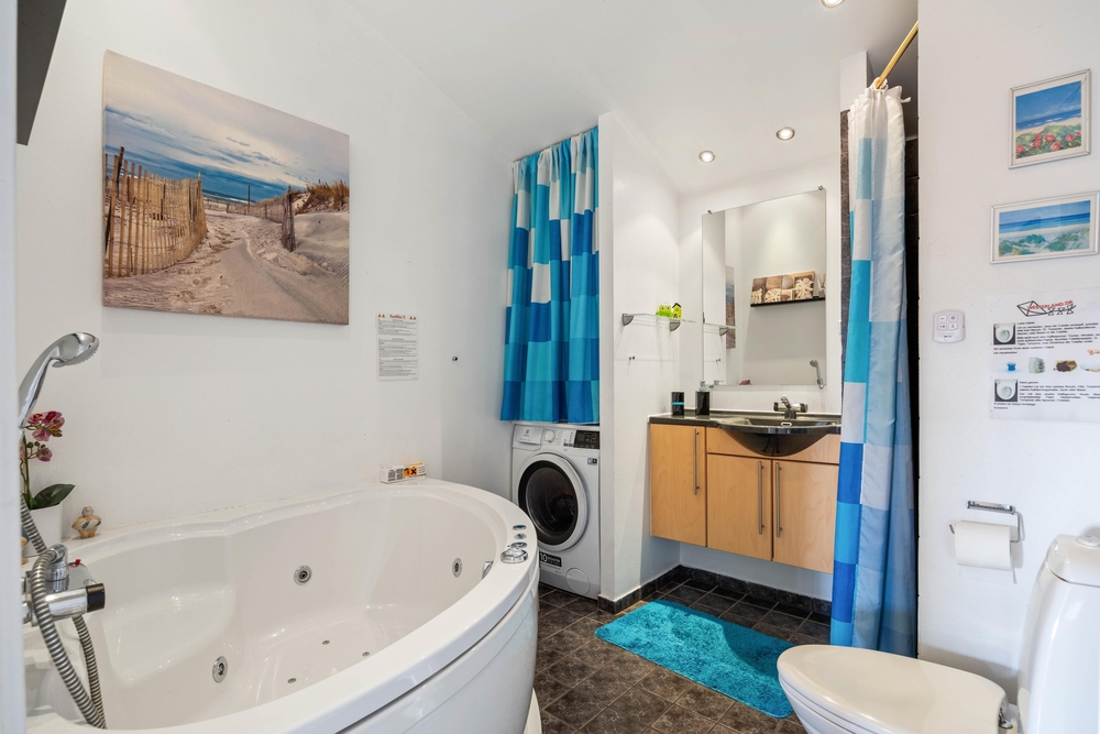 Im Badezimmer (mit Fußbodenheizung) könnt ihr es euch gerade an kühleren Tagen im Whirlpool bequem machen. Perfekt, um nach einem schönen Spaziergang so richtig zu entspannen und Abstand vom Alltag zu nehmen. In einem der Schlafzimmer steht ein Etagenbett, wo sicherlich die Kinder gleich ihr Lager aufschlagen werden. Für Familien mit Kindern ist es gut zu wissen, dass es einen öffentlichen Spielplatz in der Nähe gibt.