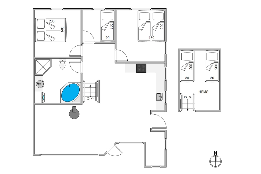 Im Ferienhaus fühlt ihr euch sicher sofort heimisch, da die hellen Decken und Wände das Haus geräumig machen und eine freundliche Atmosphäre schaffen. Die Küche ist gut ausgestattet, unter anderem mit Geschirrspüler, Mikrowelle, Kühlschrank mit 50 Liter Gefrierfach und liegt in offener Verbindung zum Ess- und Wohnbereich.