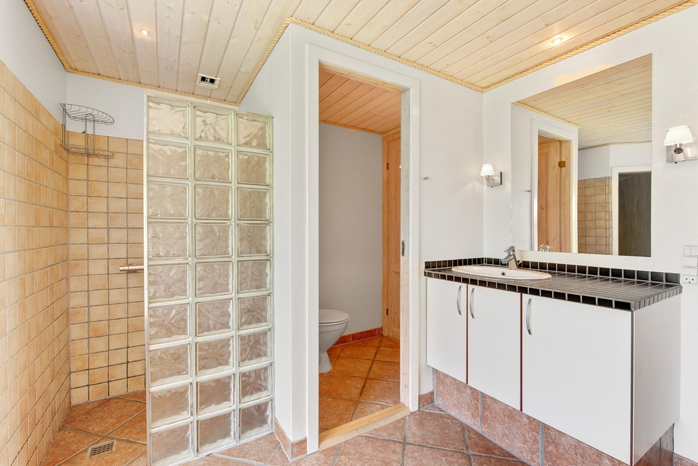Das Badezimmer lässt mit seinem Whirlpool, der Sauna, dem separaten WC, der Dusche und der Fußbodenheizung wahre Wellnessstimmung aufkommen.