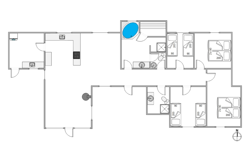 In diesem gepflegtem Ferienhaus, das im Jahr 2025 renoviert wurde, wird eure Familie einen richtig schönen und erholsamen Urlaub verbringen. Es liegt ganz nahe des Ringkøbing Fjords und nicht weit von der faszinierenden Nordsee entfernt. Bis zu 8 Personen können sich auf erholsame Tage mit Sauna und Whirlpool auf Anker Eskildsens Vej 68