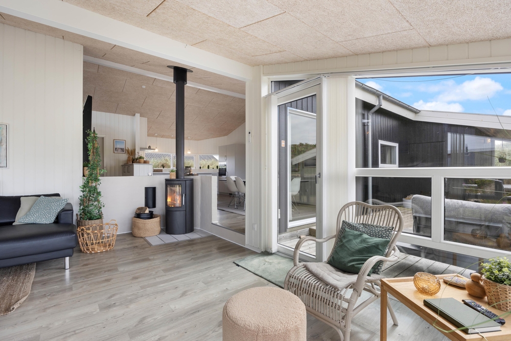 Bereits beim Betreten des gepflegten Ferienhauses fühlt man sich direkt wohl. Der große, offene Wohnbereich bietet durch seine zahlreichen Fenster viel natürliches Licht. Hier könnt ihr euch auf das Sofa kuscheln und beim Kaminfeuer ein Glas Wein genießen. Auch ein Fernseher mit Chromecast steht euch hier für einen gemeinsamen Filmeabend zur Verfügung. Zusätzlich zum Kamin ist auch eine energiesparende Wärmepumpe vorhanden.