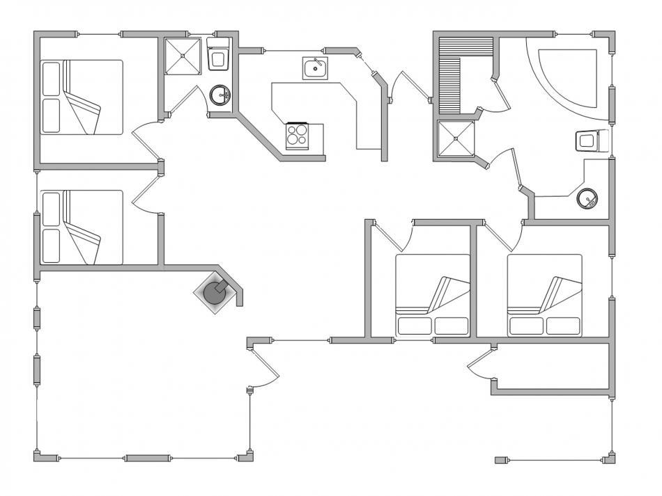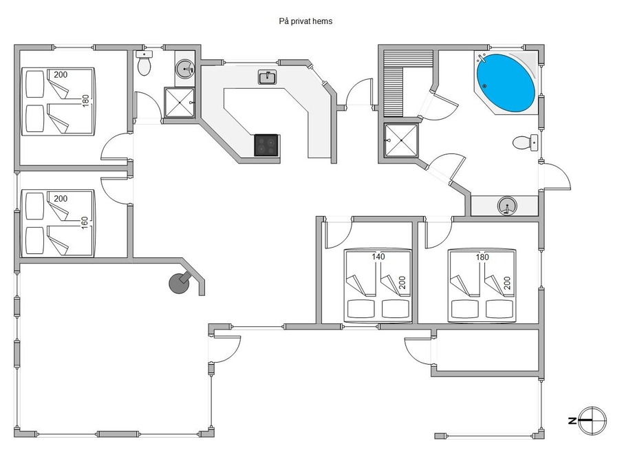 Die 4 gemütlichen Schlafzimmer mit Doppelbetten wurden jeweils an 2 unterschiedlichen Ecken des Ferienhauses platziert. Direkt daneben finden sich die Badezimmer mit Fußbodenheizung und Dusche. So wurden 2 Bereiche geschaffen, die eine praktische Aufteilung ermöglichen, wenn ihr z. B. mit 2 Familien reisen wollt. Zusätzlich gibt es auch noch ein Schlafboden mit 2 kuschligen Schlafplätzen. Dieser ist besonders bei Kindern beliebt.