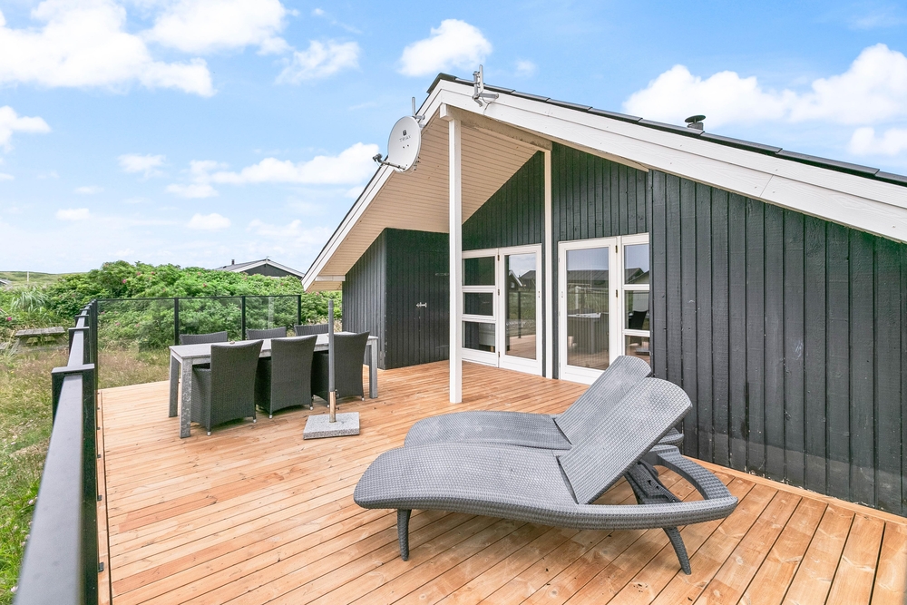 Im naturschönen Feriengebiet Bjerregård könnt ihr ausgiebige Strandspaziergänge machen oder den Sonnenuntergang von der Dünenspitze aus beobachten und einfach eure Seele baumeln lassen. Mit nur 300 m zum Wasser könnt ihr mit Kind und Hund viele schöne Stunden am Strand verbringen und wer ein wenig mehr Aktion braucht fährt nach Hvide Sande, wo ihr viele Wassersportangebote, Restaurants, Supermärkte und Geschäfte findet.