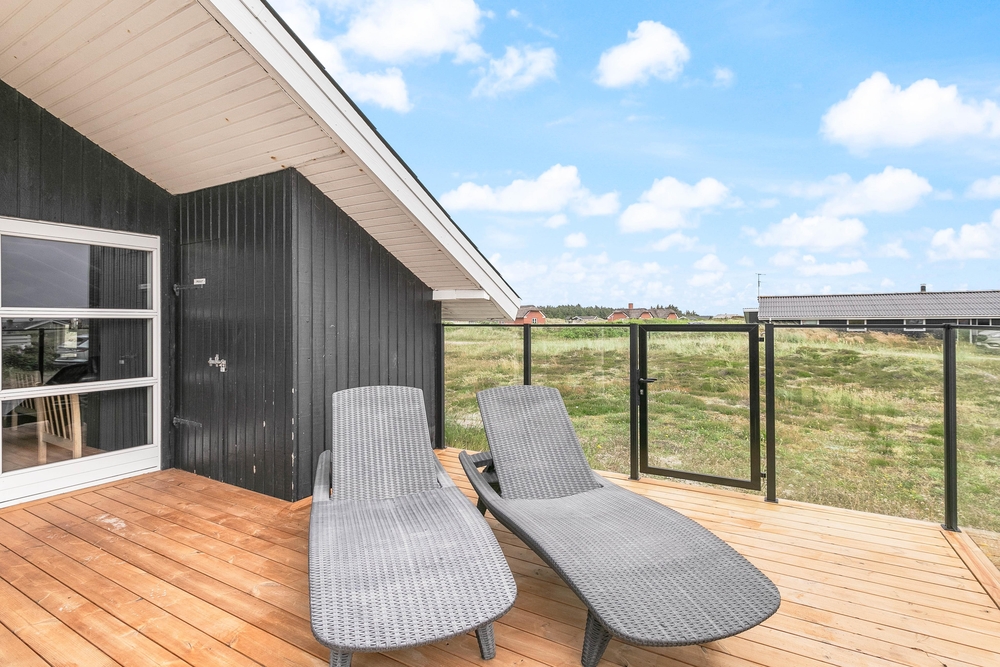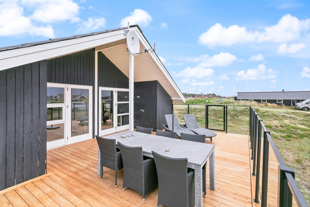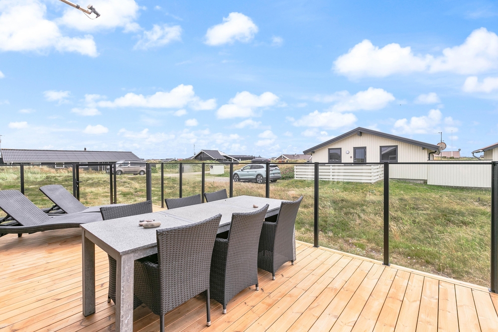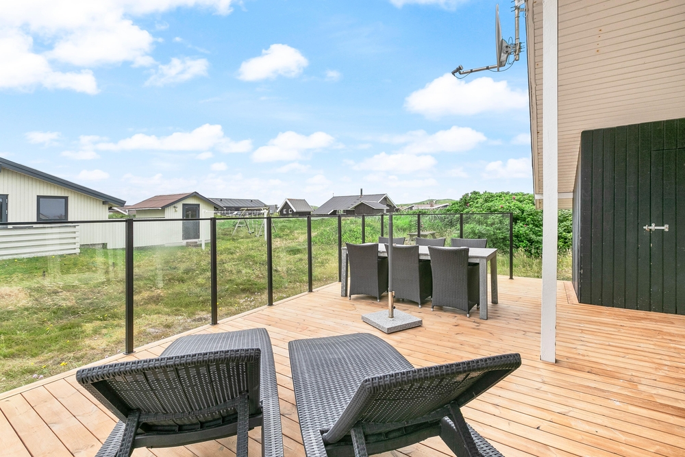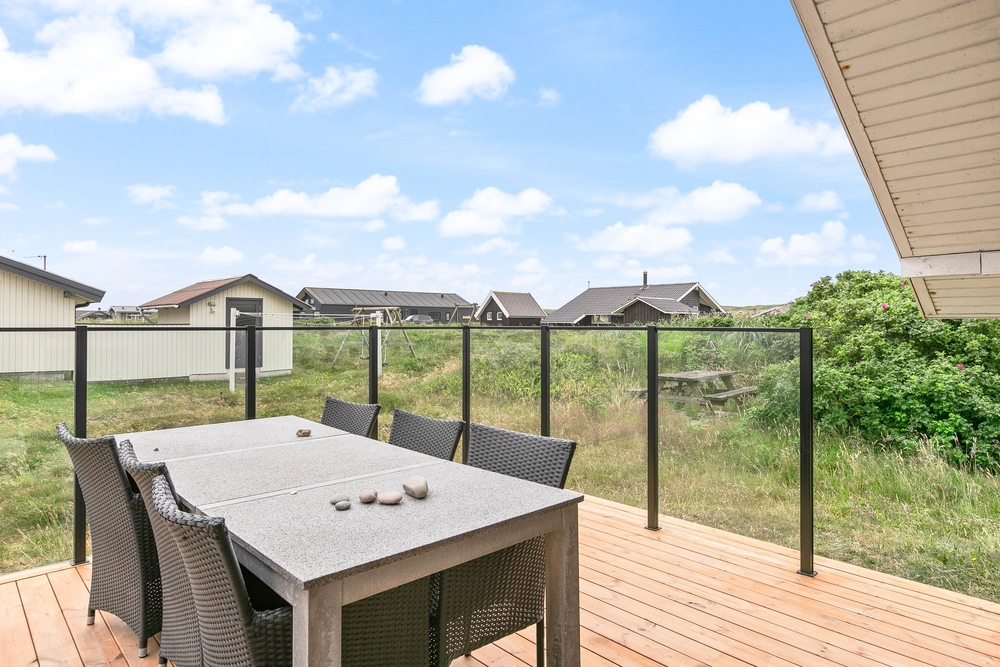 Auf der geschlossenen, teilweise abgeschirmten Terrasse aus dem Jahr 2024 könnt ihr wunderbar entspannen ? zum Beispiel bei einer Tasse frisch gebrühten Kaffees in der klaren Meeresluft. Währenddessen können die Kleinen ungestört im Sandkasten spielen, und dank der geschlossenen Terrasse müsst ihr euch keine Sorgen machen ? weder Kinder noch Hunde können unbemerkt entwischen. Zum Grillen steht euch ein Grill auf der offenen Steinterrasse beim Eingang des Ferienhauses zur Verfügung.
