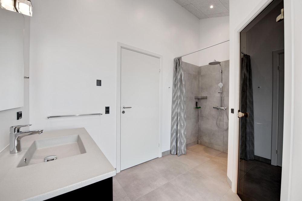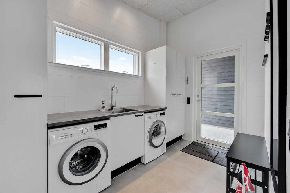 Die Bäder und die Küche bieten jeglichen Komfort und zusätzlich findet ihr auch eine Waschmaschine, einen Trockner, 2 Kühlschränke und einen separaten Frostschrank mit 126L im Haus. In einem Badezimmer gibt es auch eine tolle Sauna.