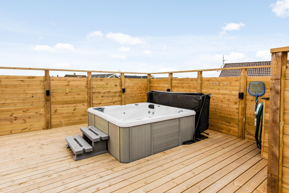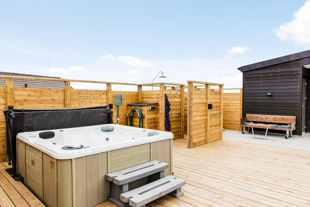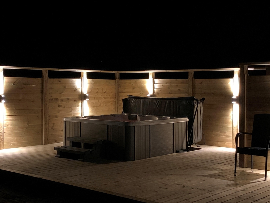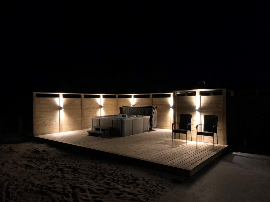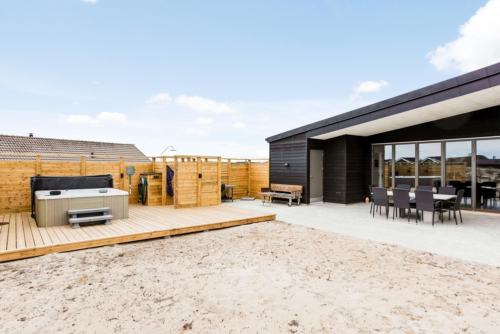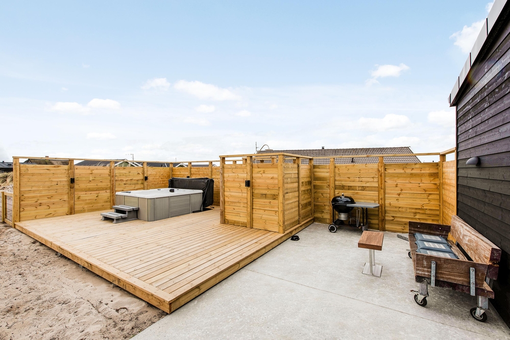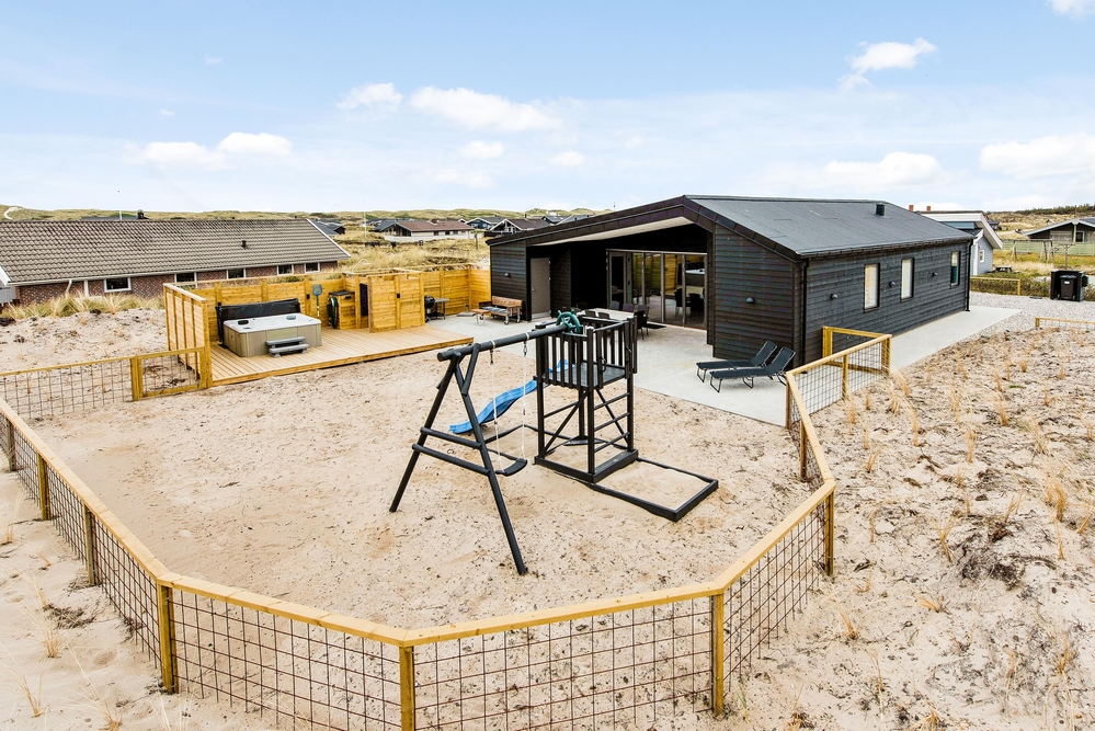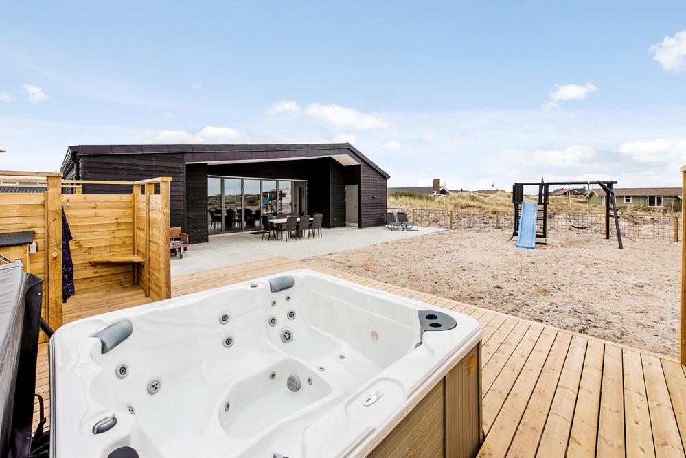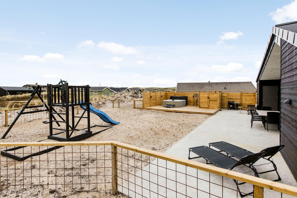 Außerhalb des Hauses findet ihr eine schöne teilweise überdachte Holzterrasse die zu langen Barbecues und ausgedehnten Sonnenbädern einlädt. Die Kinder können sich auf dem Spielturm mit Schaukel und Rutsche oder im Sandkasten vergnügen, während euer Vierbeiner sich die Beine im eingezäunten Areal vertritt und ihr euch mit einem kühlen Getränk im Außenwhirlpool entspannt.