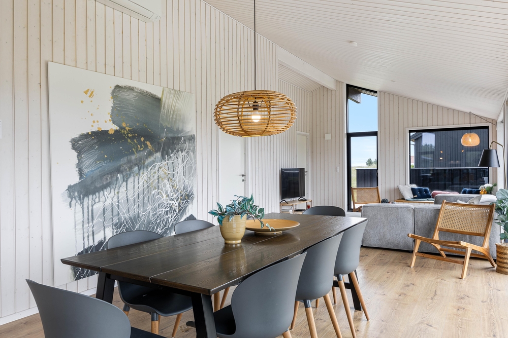 Im Zentrum eures liebevoll gestalteten Ferienhauses liegt der lichtdurchflutete Wohnraum. Hier befinden sich das Esszimmer und die Couchecke, an welcher ihr gemütliche Familienzeit bei einem entspannten Filmabend verbringen könnt. Es gibt 3 deutsche Kanäle in diesem Ferienhaus. Über Chromecast könnt ihr hier eigene Filme und Serien streamen. Über einen Bluetooth-Lautsprecher könnt ihr in der Küche während des Kochens eurer Lieblingsmusik lauschen.