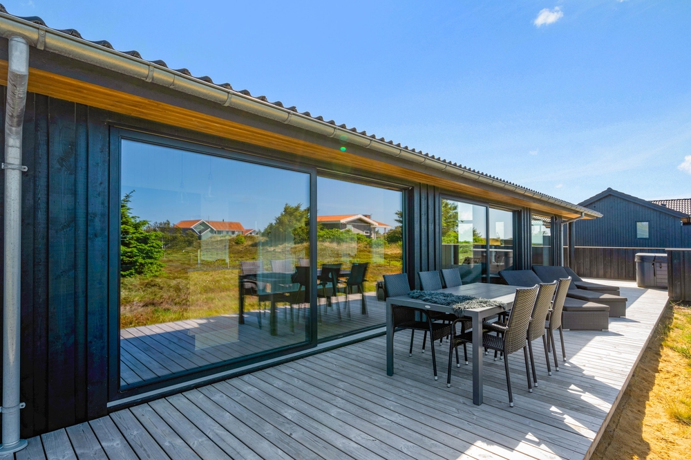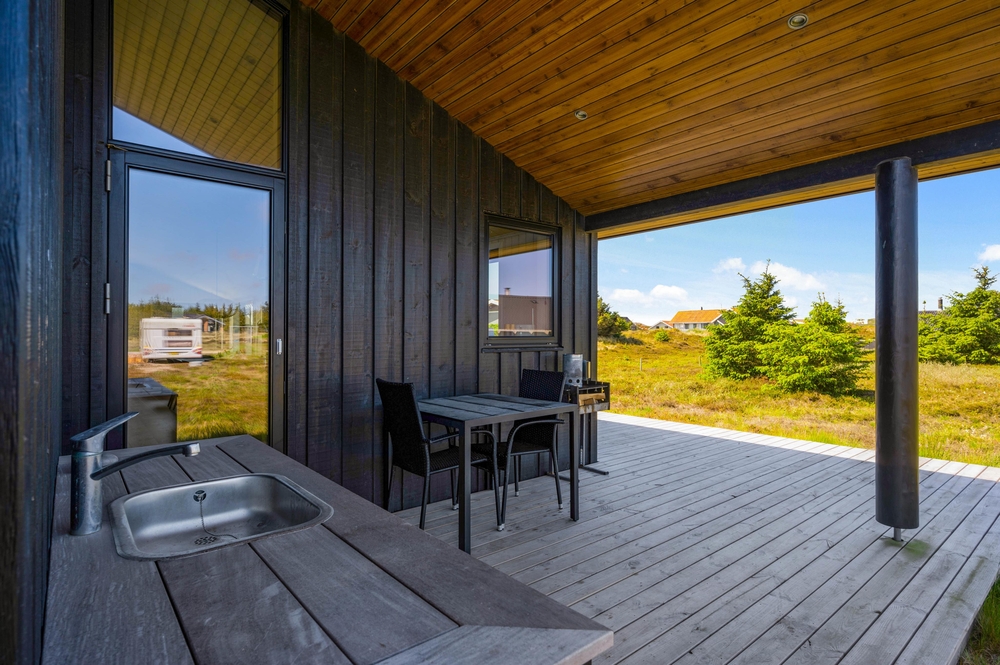 An den warmen Sommertagen lässt der Außenbereich eures Ferienhauses auf dem schönen Dünengrundstück eure Urlaubsträume wahr werden. Die teilweise abgeschirmte und überdachte Terrasse lädt euch zu entspannten Stunden an der frischen Luft ein, während ihr es euch auf den Gartenmöbeln gemütlich macht.