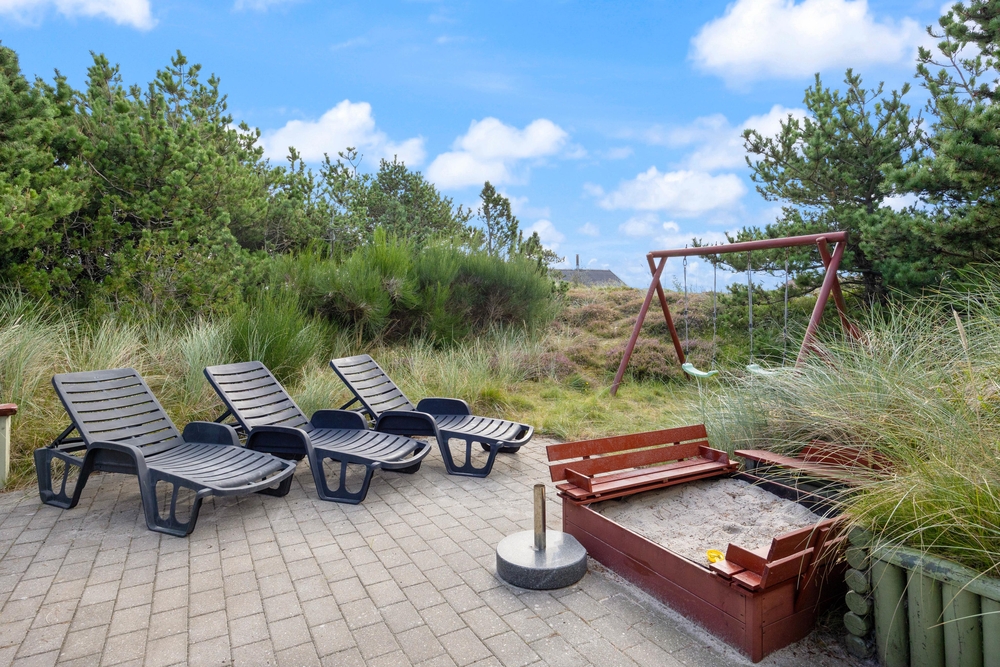Rund um euer Ferienhaus gibt es schöne Terrassenbereiche, die euch zum Verweilen einladen. Nehmt ein Sonnenbad oder zieht euch in den Schatten der Überdachung zurück, während eure Kinder schaukeln oder im Sandkasten spielen können. Am Abend könnt ihr gemeinsam Grillen und den Urlaubstag so in geselliger Runde ausklingen lassen.