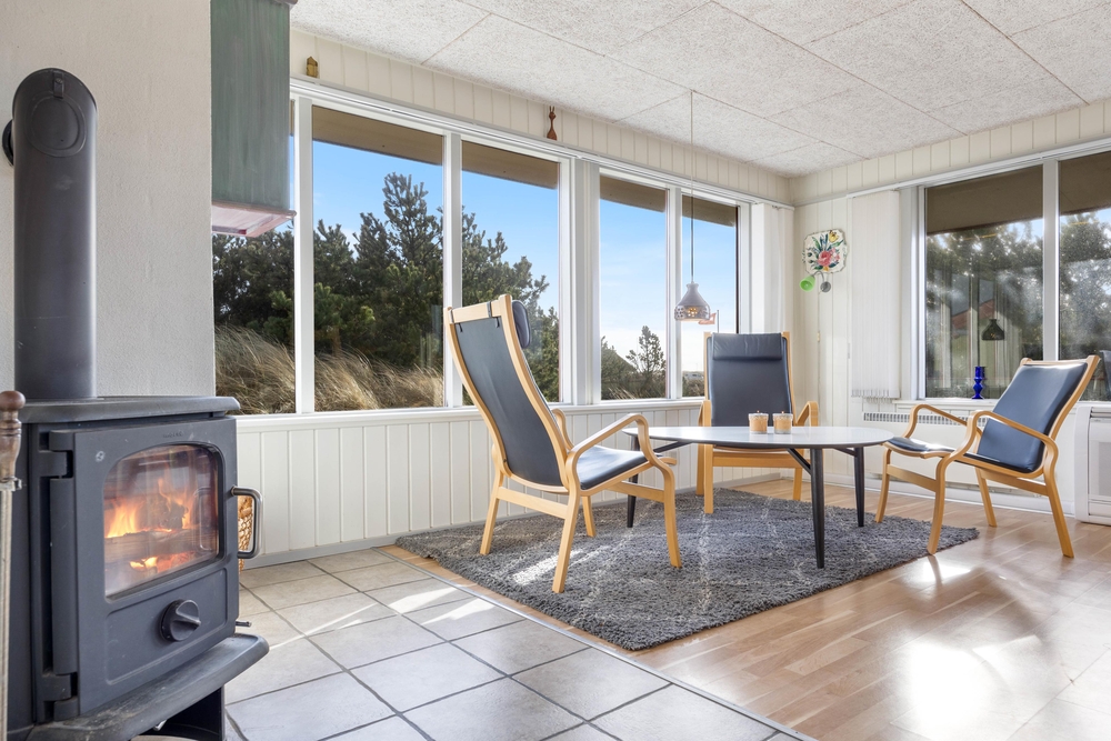 Das Herzstück dieses schönen Ferienhauses, bildet der großzügige Wohnraum, mit Holzböden, klassisch dänischem Einrichtungsstil und zahlreichen Fenstern, die für viel natürliches Licht sorgen. Hier könnt ihr fernsehen, euch gemeinsam vor den Kaminofen kuscheln und die Aussicht in die Natur genießen. Zum energiesparenden Heizen steht euch ergänzend eine Wärmepumpe zur Verfügung.