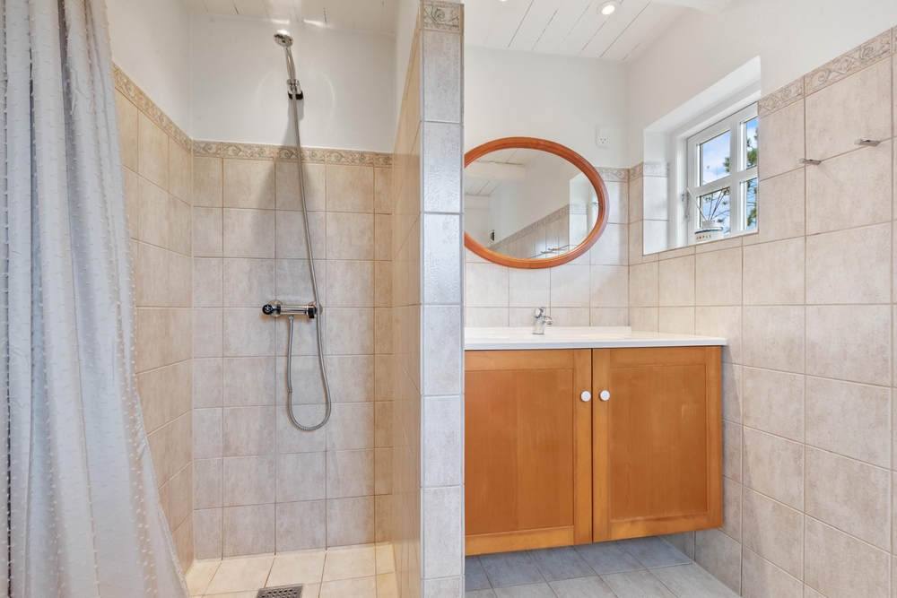 Oder ihr kuschelt euch auf die Couch und schaut gemeinsam fern, bei selbstgemachtem Popcorn. Die energiesparende Wärmepumpe sorgt dabei für eine behagliche Wärme, die ihr auf eure Wohlfühltemperatur anpassen könnt. Oder ihr feuert den Kamin an, der für eine behagliche Temperatur und eine entspannte Atmosphäre sorgt. Im praktisch eingerichteten Badezimmer wurde eine Fußbodenheizung verbaut, damit ihr nach dem Duschen keine kalten Füße bekommt.