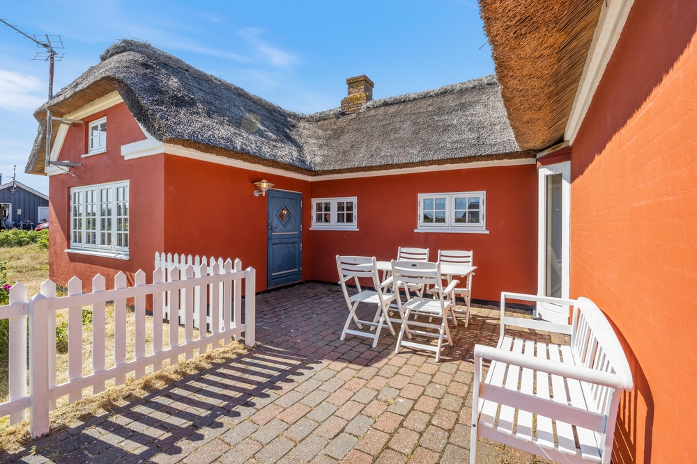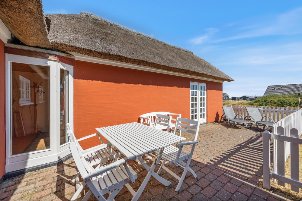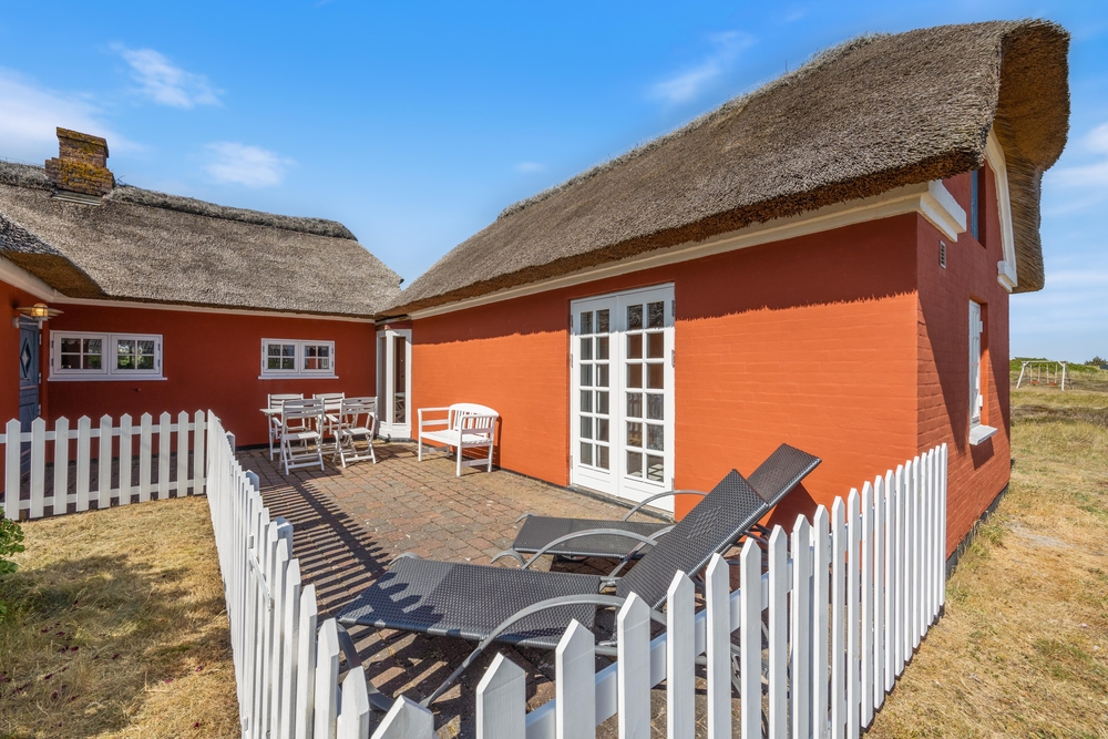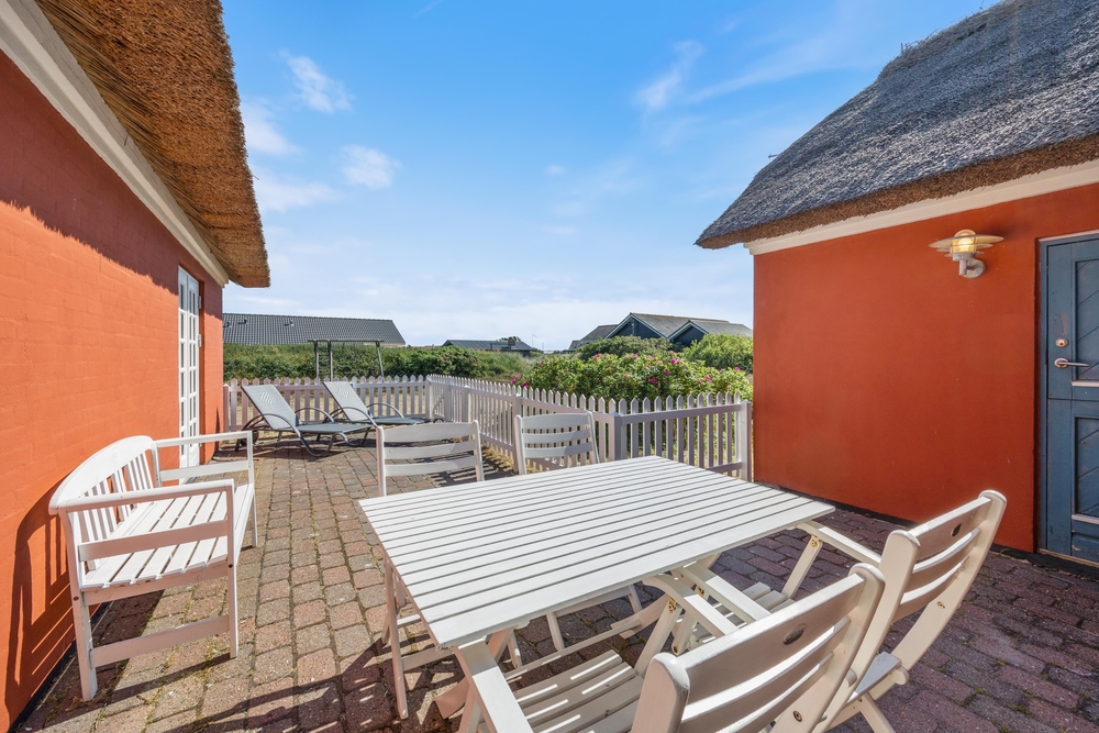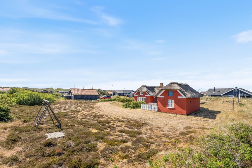 Euer idyllisches Ferienhaus liegt auf einem ca. 1300 qm großen Naturgrundstück, umgeben von Heide und Dünenlandschaft. Hier könnt ihr es euch auf der teils abgeschirmten Terrasse gemütlich machen und euch auf den Liegen sonnen oder ein leckeres Abendessen im Freien genießen. Für die Zubereitung steht euch ein Gasgrill am Ferienhaus zur Verfügung. So könnt ihr euren Ferientag bei einem leckeren BBQ an der frischen Meeresluft abschließen.