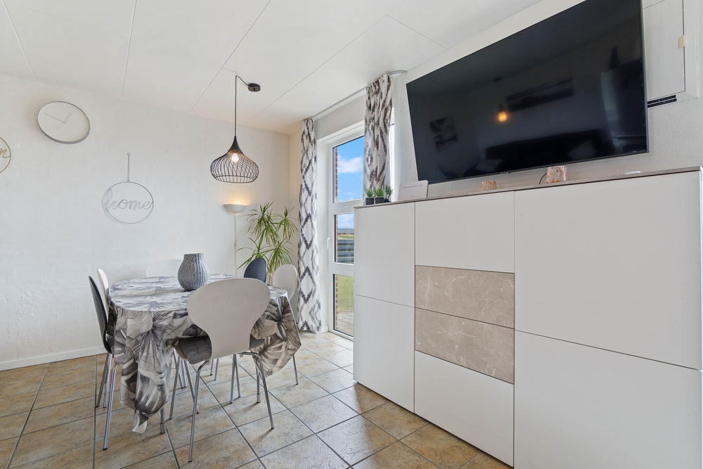 Die Ferienwohnung im beliebten Urlaubsort Bjerregård bietet einen gemütlichen Wohnraum mit Fussbodenheizung und mit 3 deutschen Fernsehprogrammen könnt ihr gemütliche fernsehen. In der praktisch eingerichteten Küche könnt ihr gemeinsam leckeres Essen zubereiten und der Geschirrspüler nimmt euch den Abwasch ab. Ihr könnt euren Urlaub in vollen Zügen mit der Familie genießen.