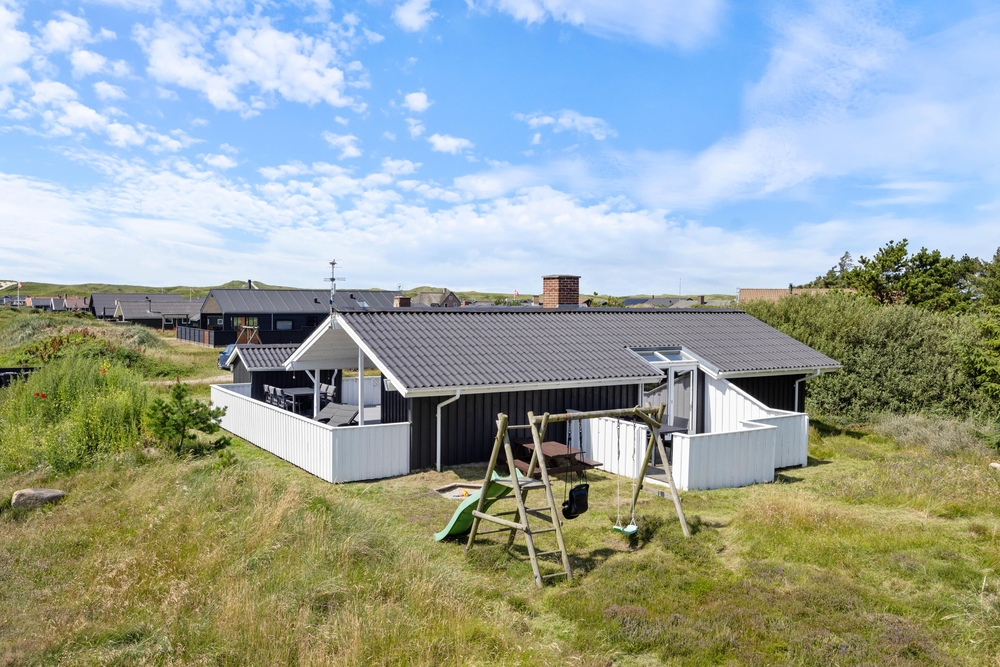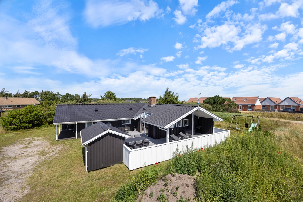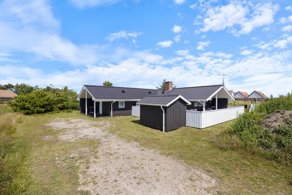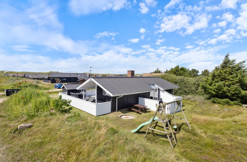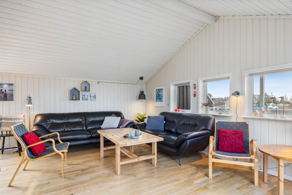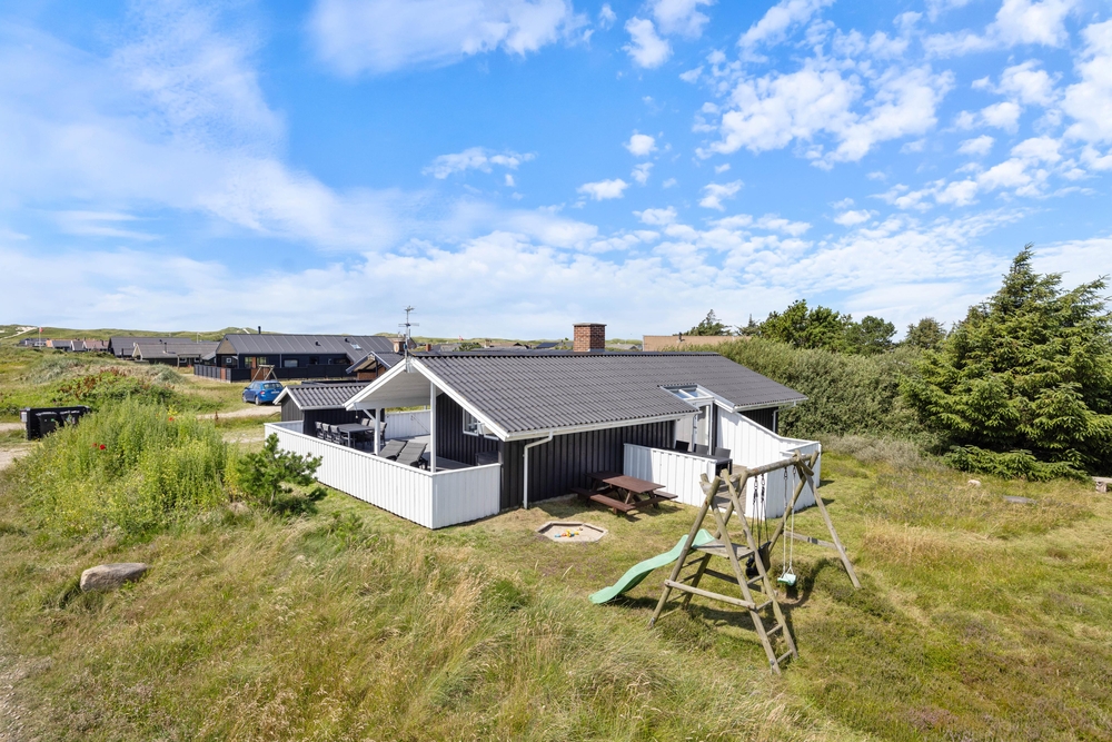 Seid ihr auf der Suche nach einem dänischen Ferienhausklassiker mit Kamin, Sauna und geschlossener Terrasse? Dann werdet ihr in diesem schönen Ferienhaus im Arvidvej 232, an der dänischen Westküste, fündig.