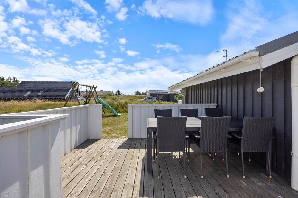 Euer Ferienhaus im Arvidvej 232 verfügt über zwei schöne Terrassenbereiche. Die Ostterrasse lädt zum gemeinsamen Frühstück bei aufgehender Sonne ein. Die südwestliche Terrasse ist umzäunt und somit perfekt geeignet, wenn ihr eure kleinen Kinder oder Hunde auch mal freilaufen lassen wollt.