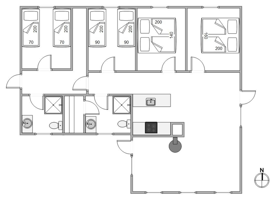 Dieses helle Ferienhaus betretet ihr durch den Flur, wo ihr Platz für eure Jacken und Schuhe findet. Auf der einen Seite befinden sich alle vier Schlafzimmer mit gemütlichen Betten. Es gibt zwei Doppelbettzimmer und zwei Zimmer mit je zwei Einzelbetten. So könnt ihr euch gut aufteilen. Auf der anderen Seite liegen die beiden gepflegten Badezimmer mit Fußbodenheizung und Dusche.