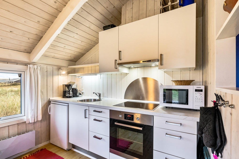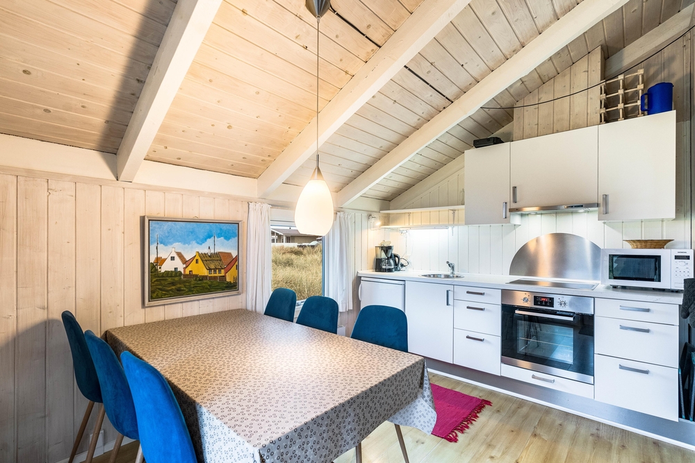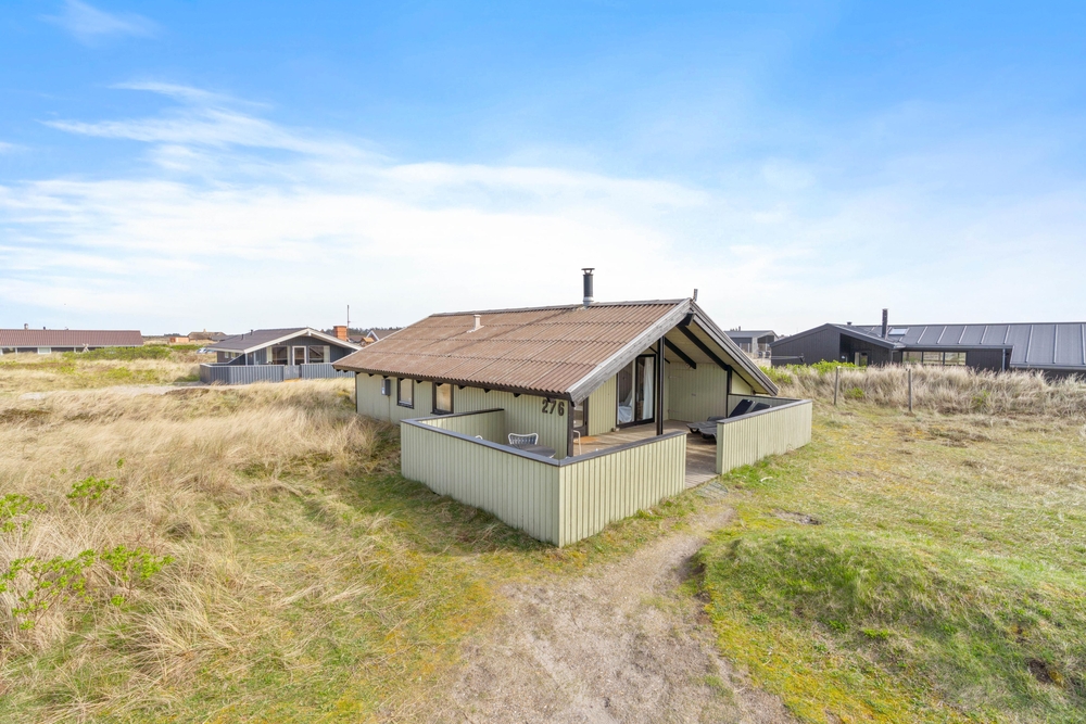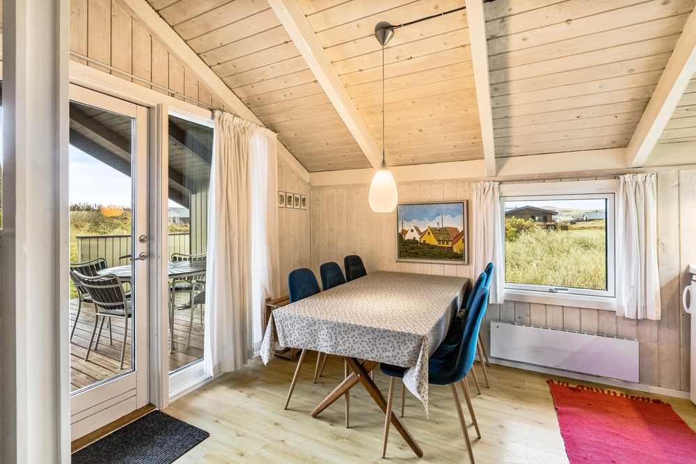 Im schönen Sommerhausgebiet Bjerregård findet ihr dieses kleine, gemütliche und gepflegte Sommerhaus für 6 Personen und 2 Hunde. Das Sommerhaus ist hell und freundlich eingerichtet, hat 2 geräumige Schlafzimmer, einen Alkoven und einen schönen Anbau. Vom Sommerhaus sind es nur 450 Meter bis zur Nordsee, wo ihr lange Spaziergänge am Strand unternehmen und an einem lauen Sommerabend einen wunderschönen Sonnenuntergang genießen könnt.