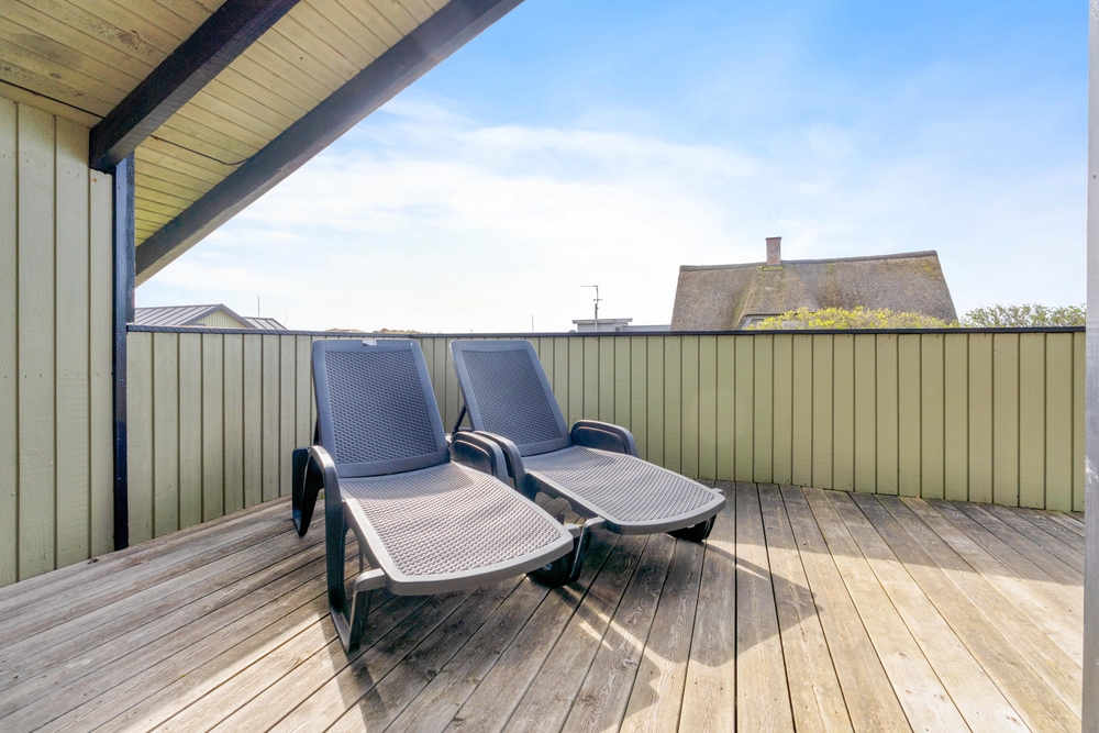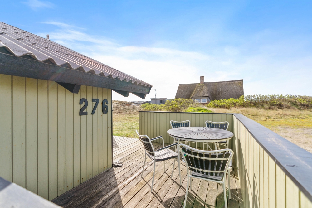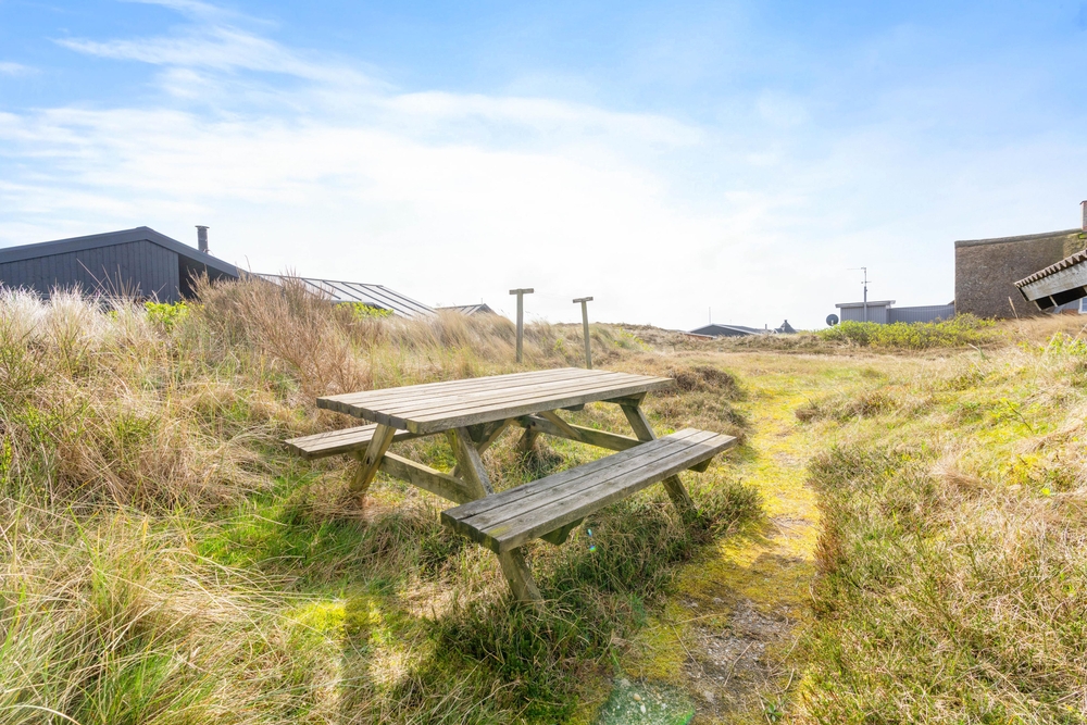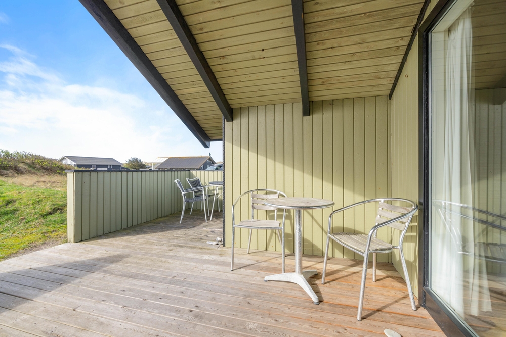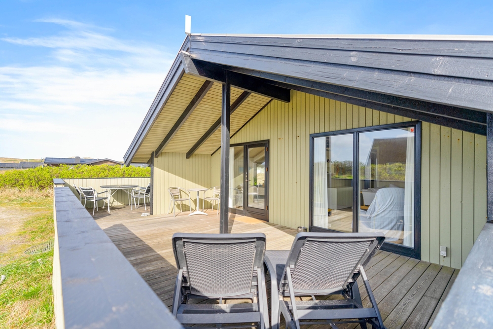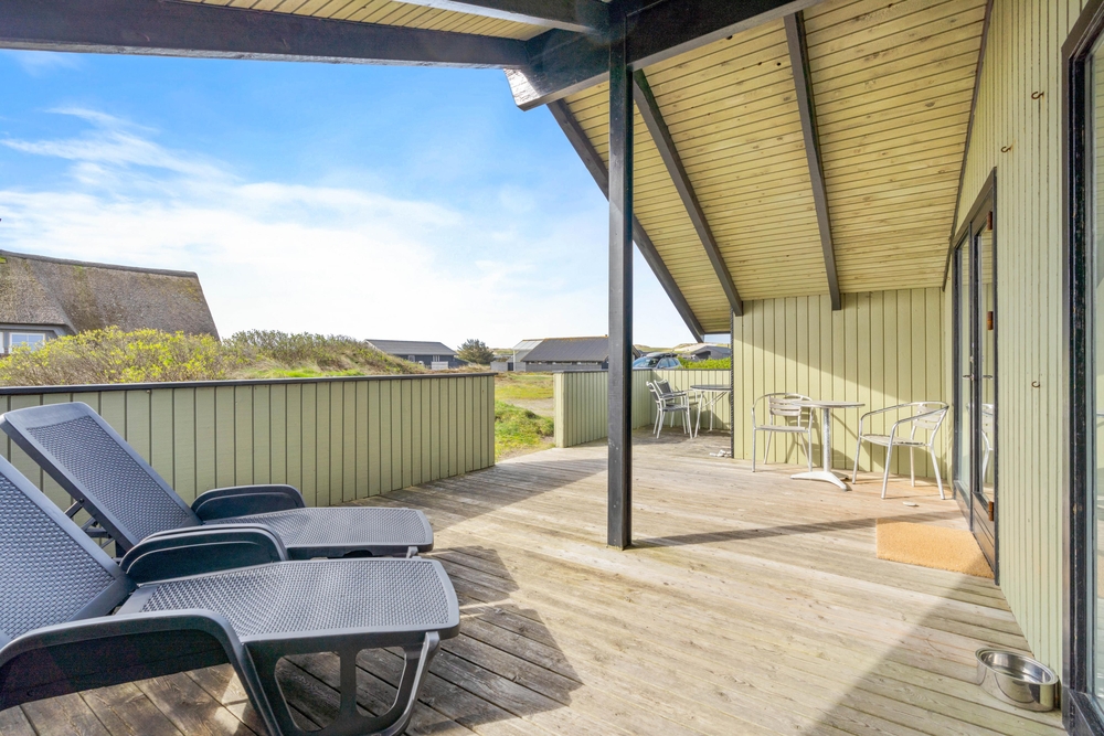 Die große Südwestterrasse mit bequemen Gartenmöbeln, Liegestühlen und Grill ist abgeschirmt und teilweise überdacht. Hier trifft sich die ganze Familie zu einem köstlichen Grillabend ? vielleicht mit frisch gefangenem Fisch aus dem Ringkøbing Fjord? Wenn ihr beim Angeln kein Glück hattet, könnt ihr den Fisch auch in der gemütlichen Hafenstadt Hvide Sande kaufen, die eine 15-minütige Fahrt von hier entfernt ist.