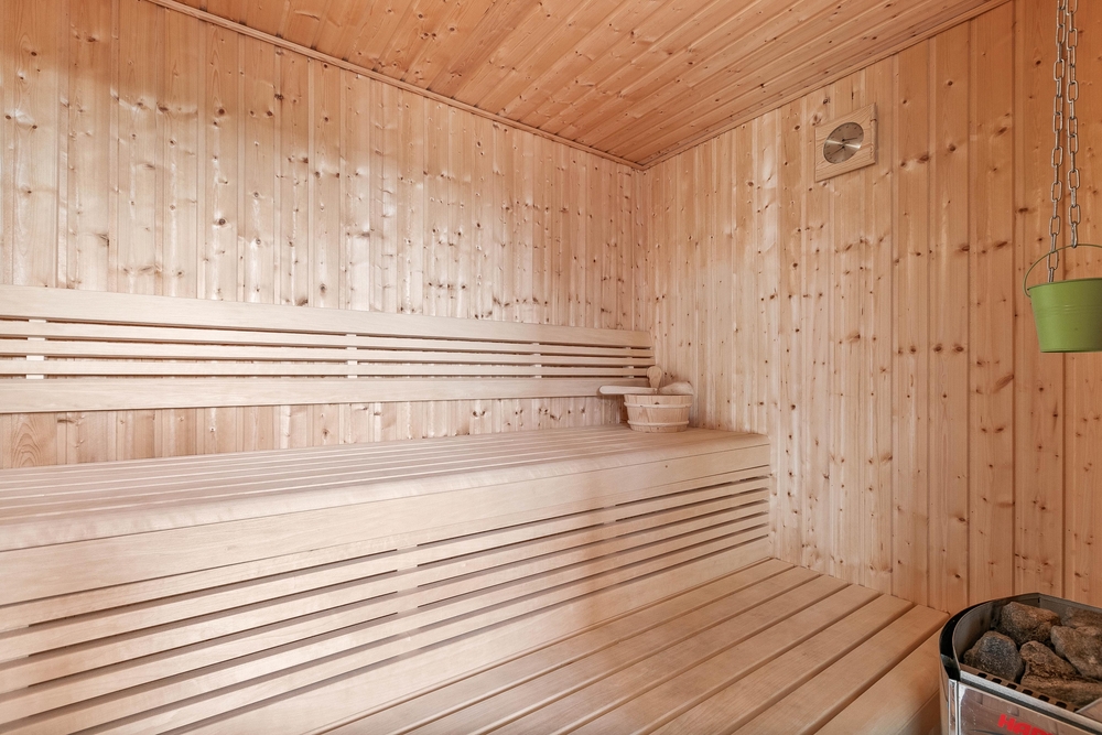 Wenn ihr euch aufwärmen und eine Pause vom Alltag machen wollt, findet ihr hier auch die Sauna des Ferienhauses. Hier könnt ihr ausgiebige Saunagänge genießen- besonders an einem regnerischen oder kühlen Sommertag ist das fantastisch.