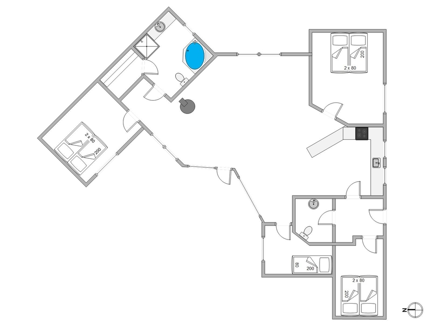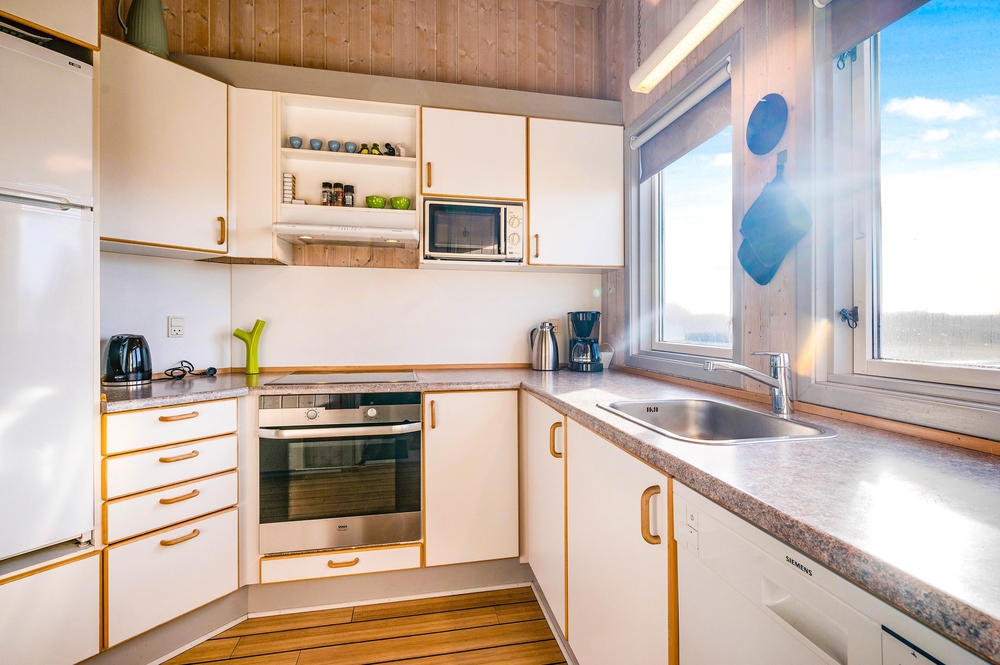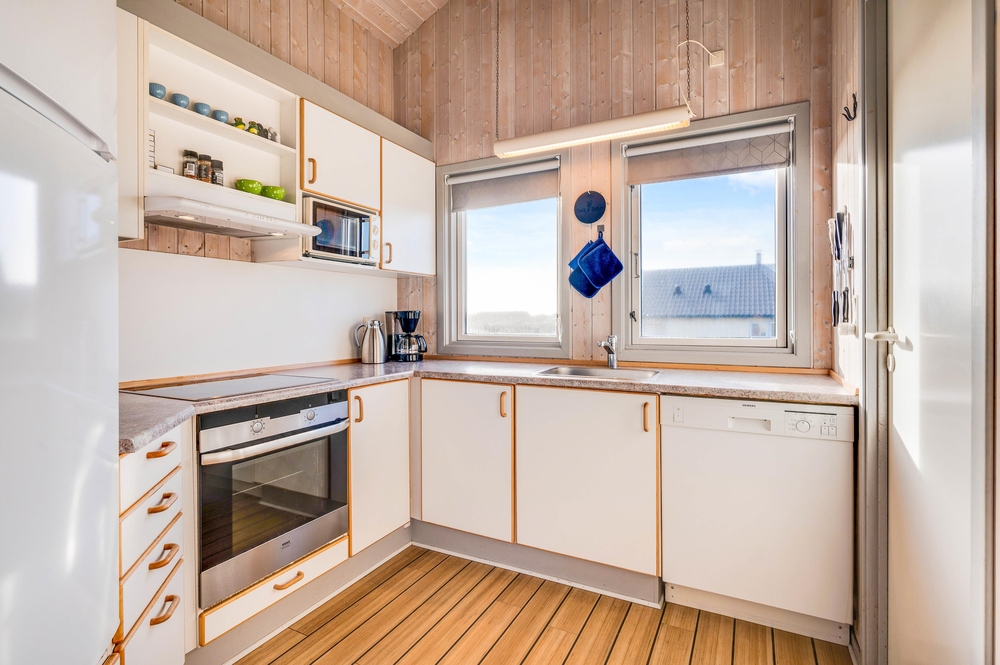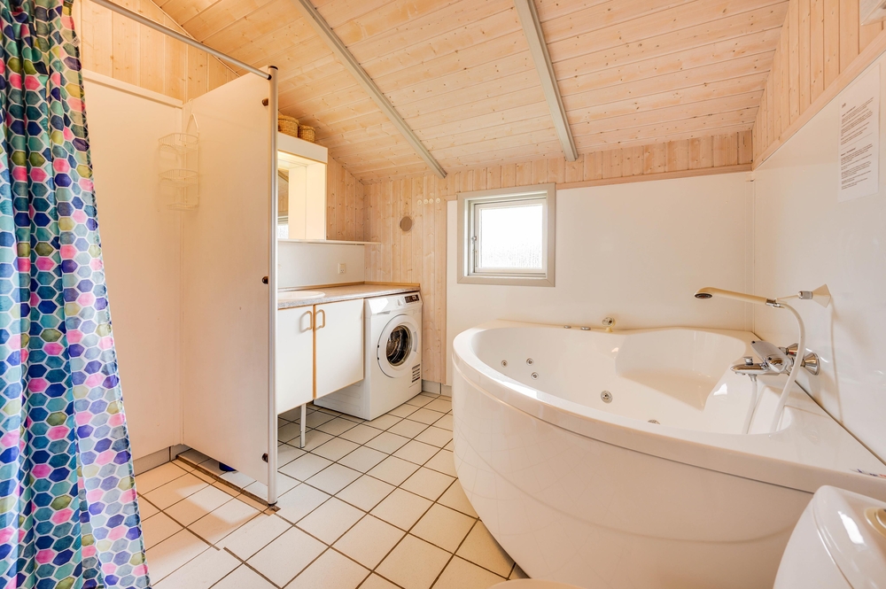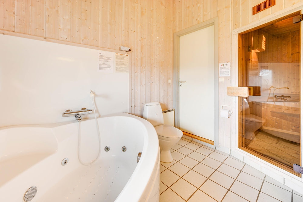 Die offene Küche ist gut und modern ausgestattet und beinhaltet alles, was es zur Zubereitung leckerer Gerichte benötigt. Euer praktisch aufgeteiltes Ferienhaus verfügt sowohl über ein großes Badezimmer als auch über ein Gäste-WC. So könnt ihr Wartezeiten vorm Bad vermeiden. Das große Badezimmer ist mit eurer eigenen Wellnessabteilung ausgestattet. Hier könnt ihr lange Saunagänge genießen und im Whirlpool den Alltagsstress vergessen. Zudem gibt es hier eine Fußbodenheizung, damit ihr keine kalten Füße fürchten müsst.