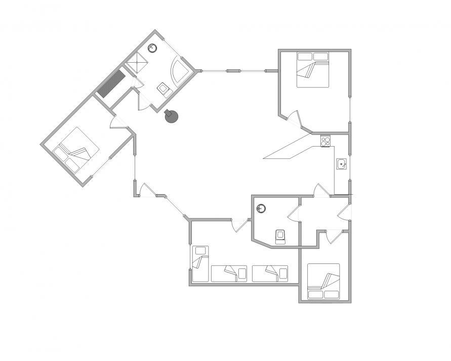 Für insgesamt 7 Personen stehen euch 3 gemütlich eingerichtete Schlafzimmer mit Doppelbetten, sowie ein Schlafzimmer mit Einzelbett zur Verfügung.