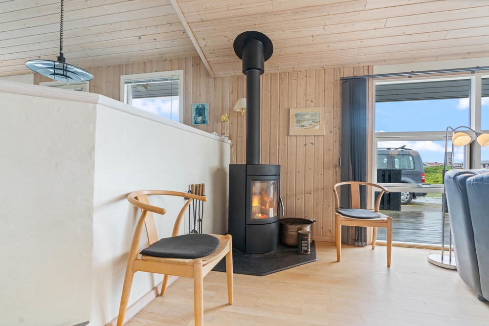 In eurem gemütlichen Ferienhaus gibt es viele Gelegenheiten, um mit der Familie und Freunden eine schöne Zeit zu verbringen. Es gibt einen schönen, hellen Wohnbereich mit gemütlicher Einrichtung und komfortablen Möbeln. In der offenen, gut ausgestatteten Küche mit angrenzendem Essplatz könnt ihr gemeinsam kochen, im Wohnzimmer einen Film ansehen oder vor dem warmen Holzofen, der besonders an kühleren Tagen Freude verbreitet, ein gutes Buch lesen. Die energiesparende Wärmepumpe sorgt für ein angenehmes Raumklima.