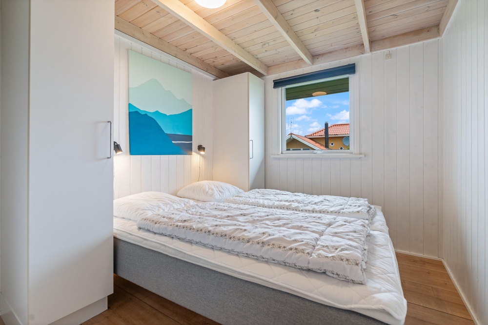 Hinter der Adresse Auroravej 4 verbirgt sich dieses 110 qm große Ferienhaus mit Platz für bis zu 6 Personen, welches im Jahre 2023 renoviert wurde. Auch eure beiden Vierbeiner sind hier herzlich willkommen. Die 6 Betten sind auf 3 schöne Schlafzimmer aufgeteilt, alle mit bequemen Betten und viel Stauraum ausgestattet. Praktischerweise gibt es auch ein Extra-Zimmer mit Schränken mit Schiebetüren und einen großen Dachboden zum Spielen. Die jüngsten Familienmitglieder werden sich hier sicher wohlfühlen.