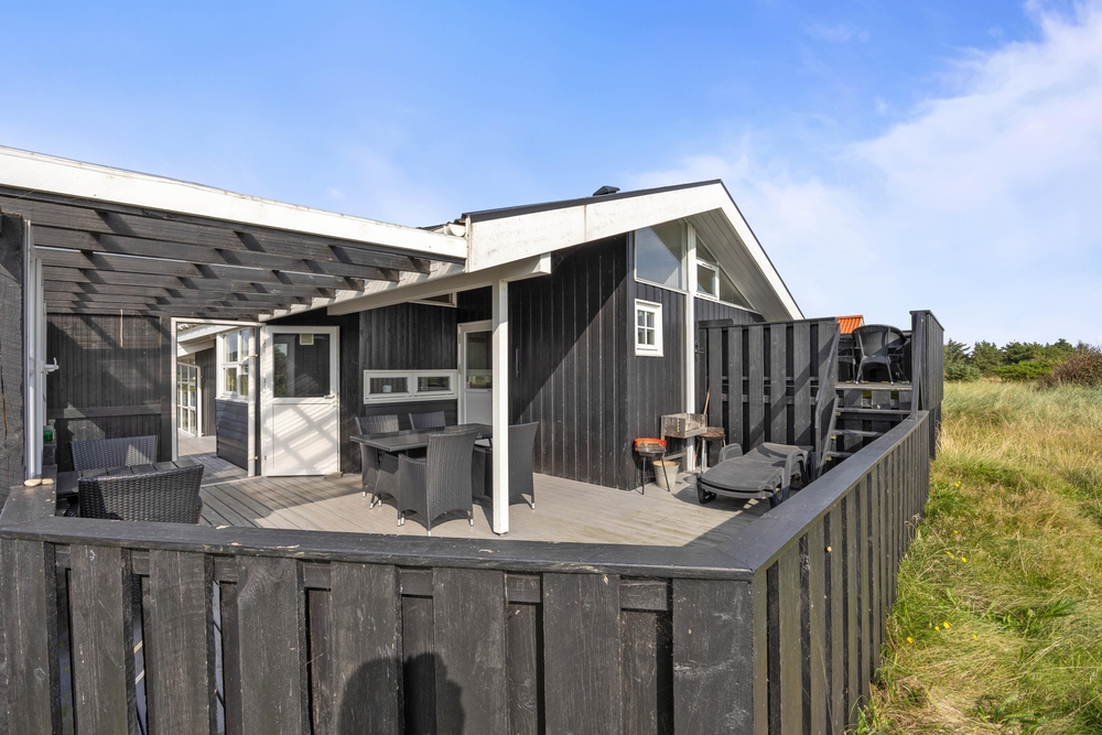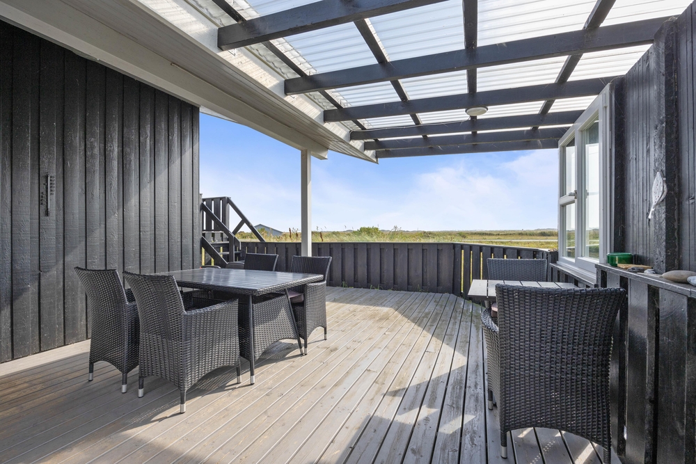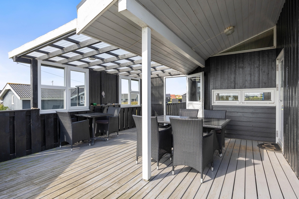 Auch der Außenbereich eures Ferienhauses ist sehr schön. Hier könnt ihr die Sonne genießen, euch entspannen und eure Urlaubsausflüge planen. Das Ferienhaus ist von mehreren Seiten von einer schönen Terrasse umgeben, die umzäunt und teilweise überdacht ist. Hier könnt ihr ein Mittagessen vom Grill genießen ? z. B. mit frisch gegrilltem Fisch.